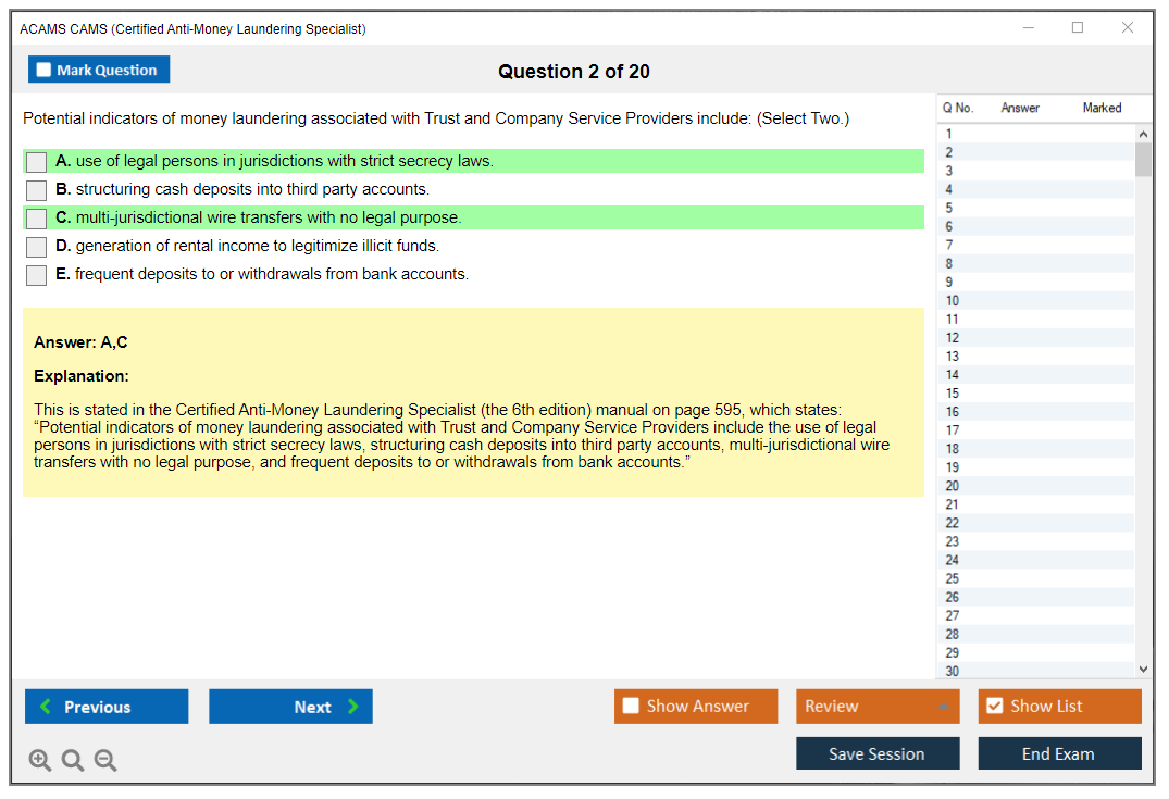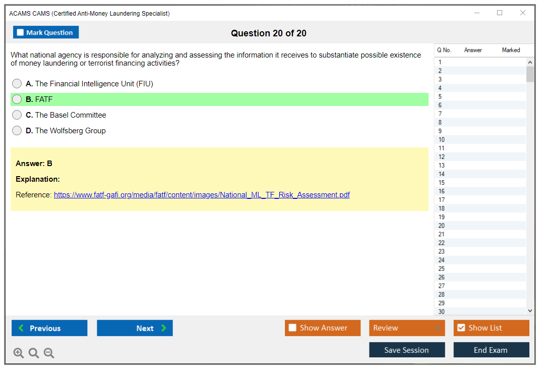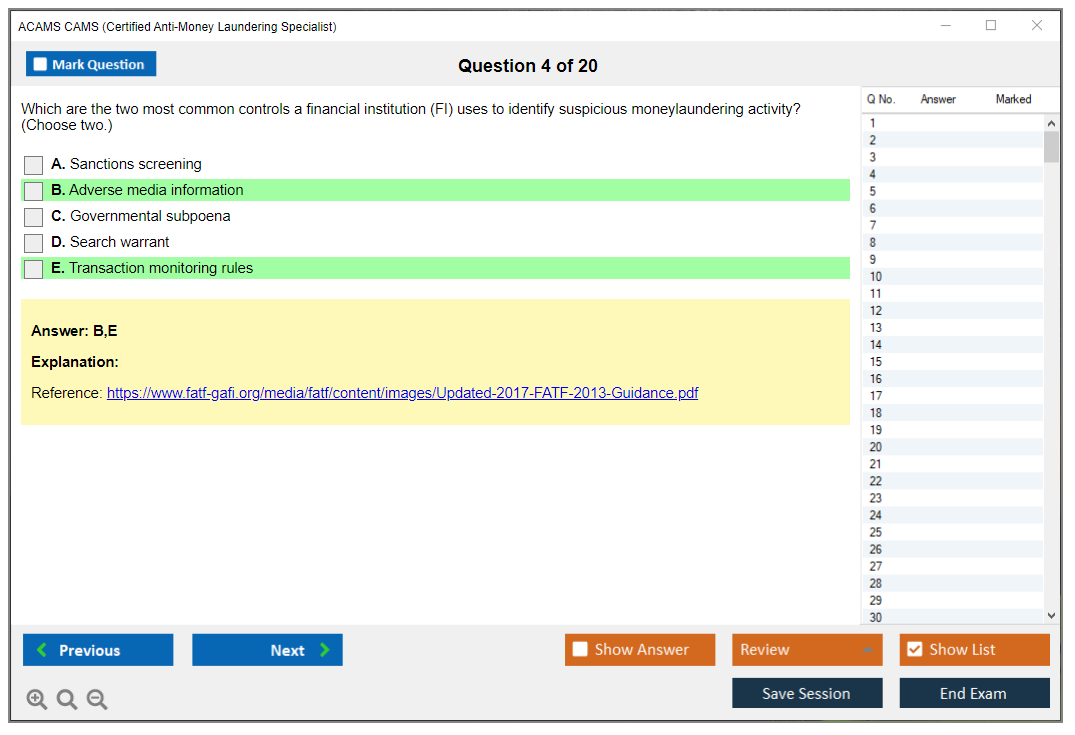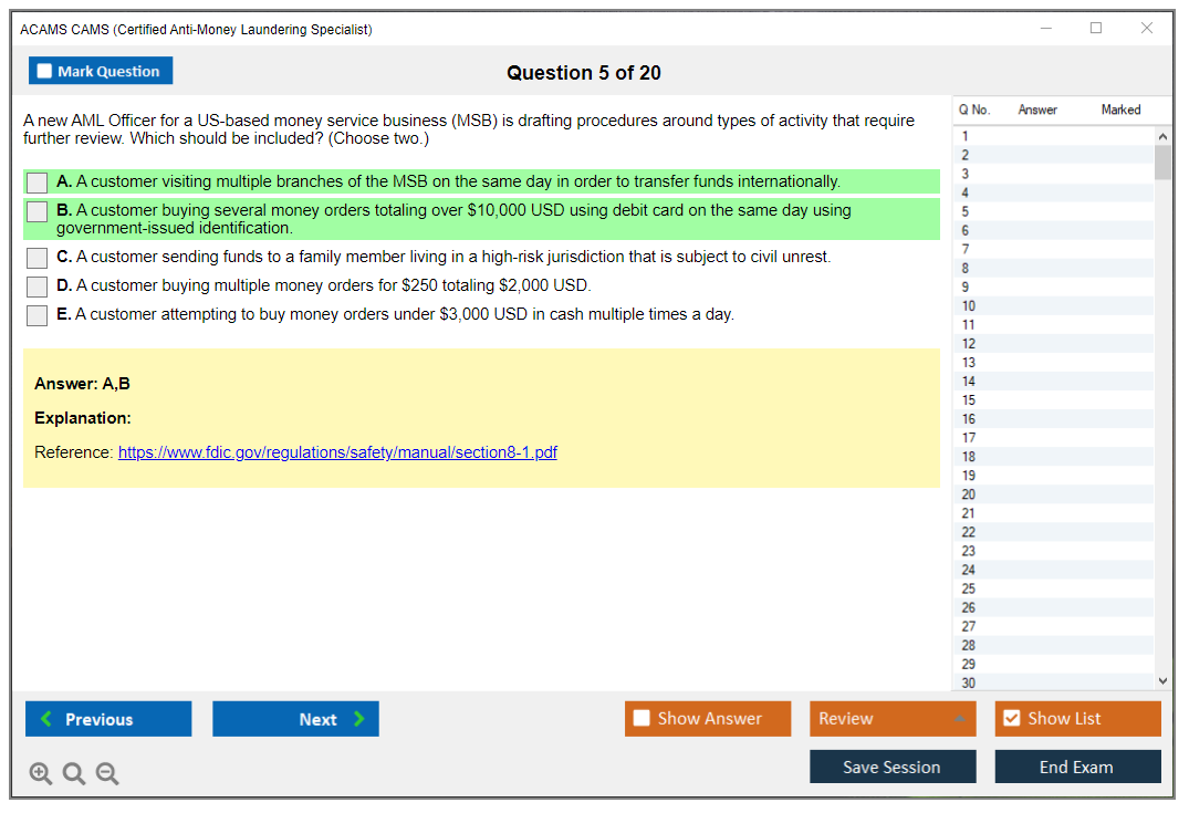 The ACAMS CAMS (Certified Anti-Money Laundering Specialist) Exam is a globally recognized certification for professionals in the anti-money laundering (AML) and financial crime prevention sectors. It validates expertise in AML detection, prevention, and enforcement.