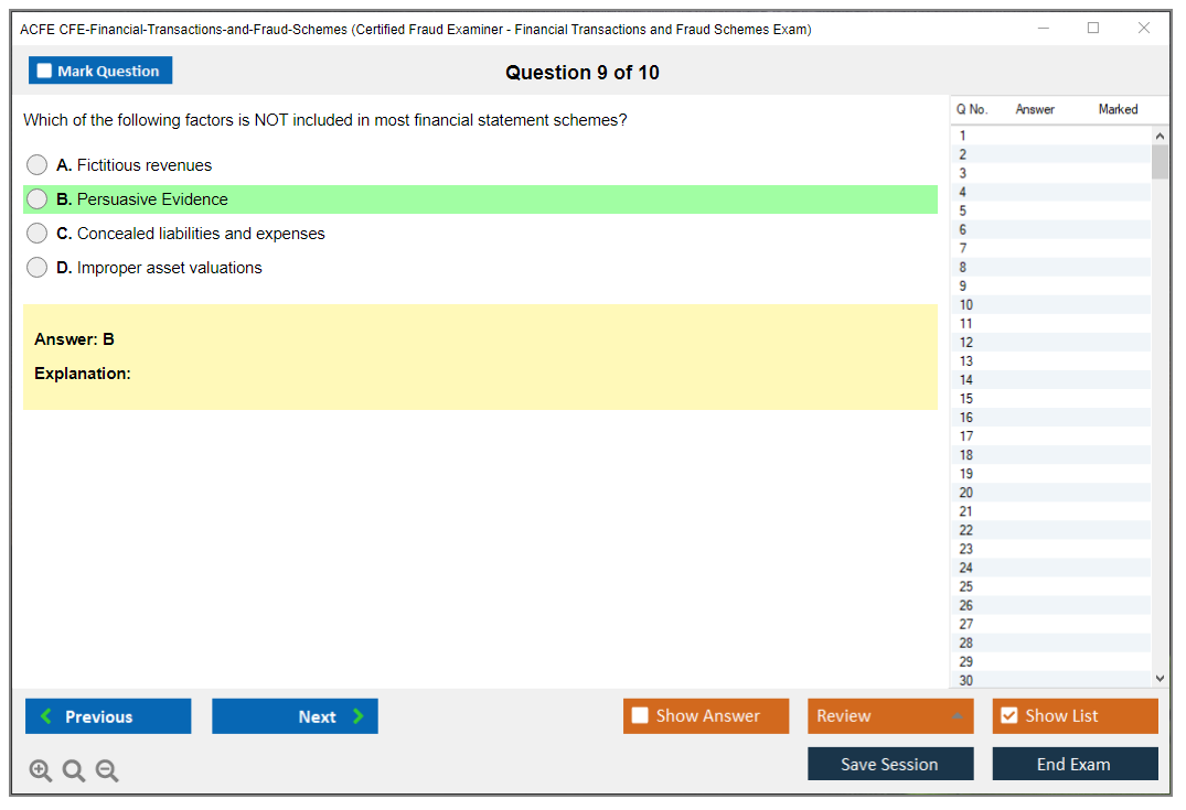 The ACFE CFE-Financial-Transactions-and-Fraud-Schemes Exam is a key component of the Certified Fraud Examiner (CFE) credential, focusing on the understanding of various financial transactions and fraud schemes. It helps professionals demonstrate their expertise in identifying, analyzing, and mitigating fraudulent activities in financial contexts.