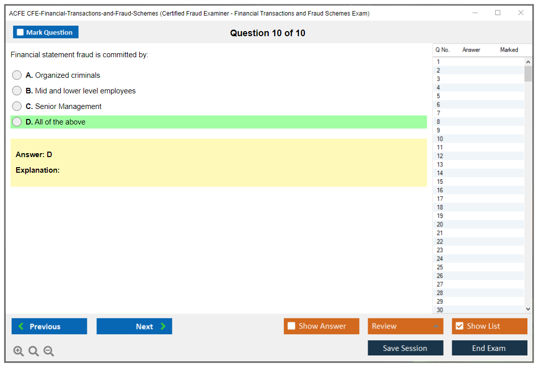 The ACFE CFE-Financial-Transactions-and-Fraud-Schemes (Certified Fraud Examiner - Financial Transactions and Fraud Schemes) Exam is a specialized certification exam designed to test the knowledge and skills of professionals in detecting and preventing financial fraud schemes. It is part of the Certified Fraud Examiner (CFE) credential offered by the Association of Certified Fraud Examiners (ACFE).