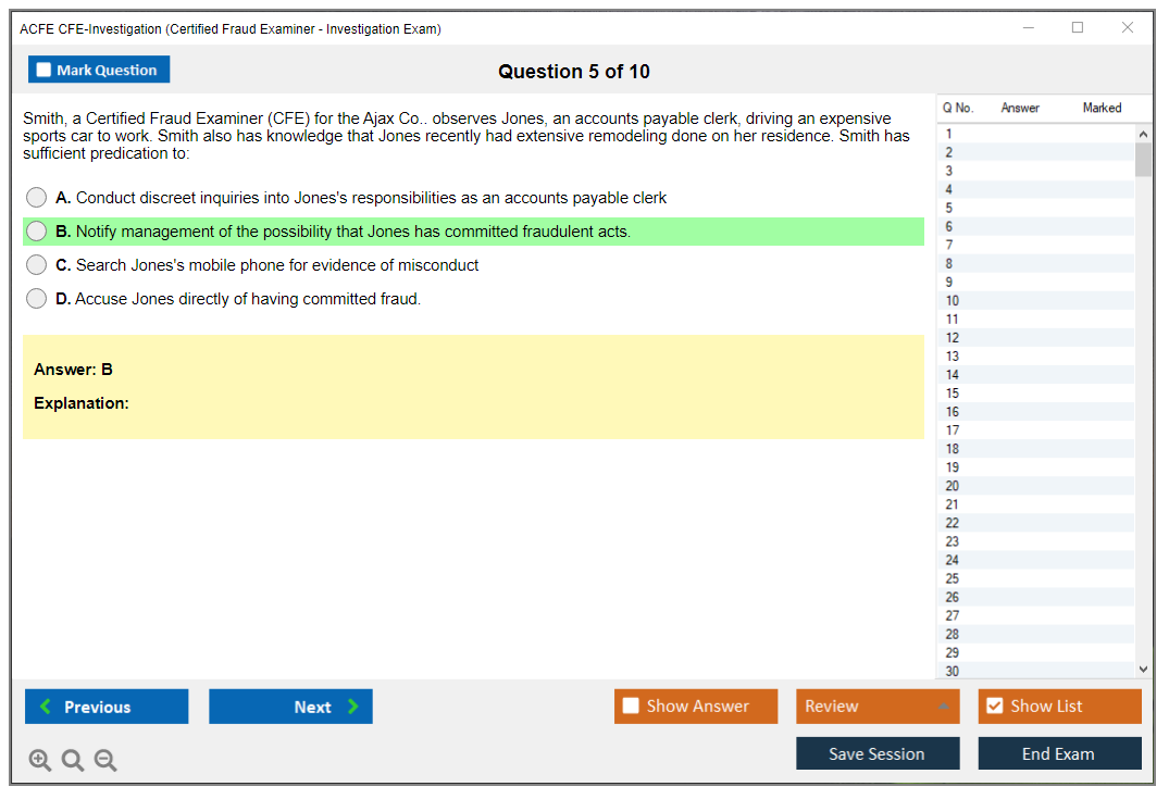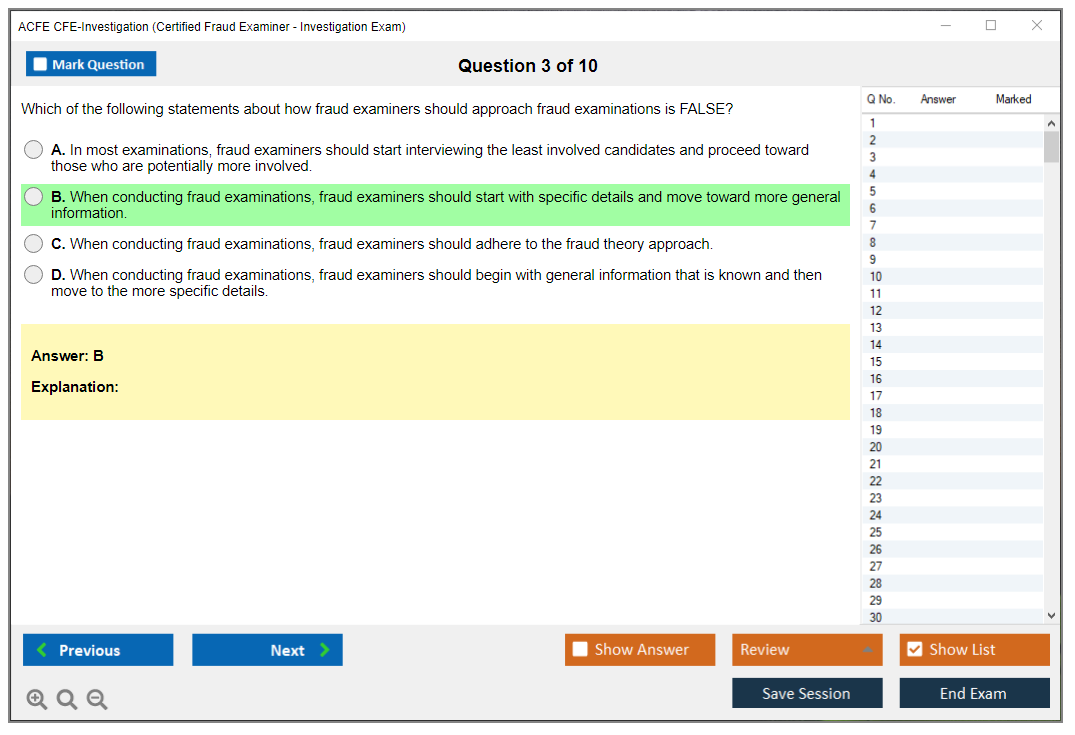 The ACFE CFE-Investigation Exam focuses on the principles and techniques used in conducting investigations to detect and prevent fraud. It tests candidates on their ability to gather evidence, interview suspects and witnesses, and understand the legal aspects of fraud investigation.