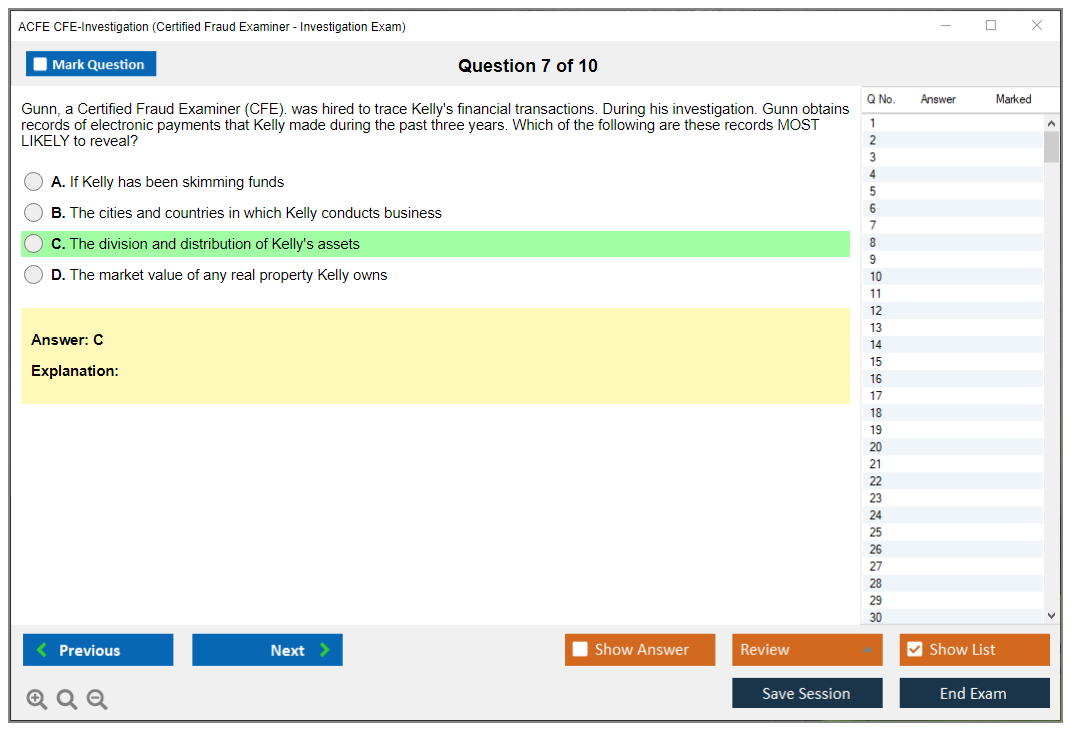 The ACFE CFE-Investigation (Certified Fraud Examiner - Investigation) Exam is a certification exam designed to assess a candidate's knowledge and skills in fraud investigation. It is one of the four sections of the CFE Exam, which also includes Financial Transactions & Fraud Schemes, Law, and Fraud Prevention & Deterrence.