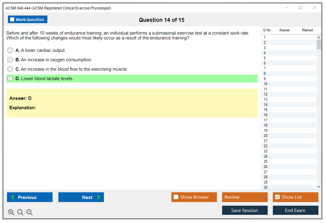 The ACSM 040-444 (ACSM Registered Clinical Exercise Physiologist) Exam is designed for individuals who work with clients with medically controlled diseases and health conditions. It focuses on advanced knowledge in exercise physiology and the ability to apply exercise principles to clients with chronic diseases and conditions.