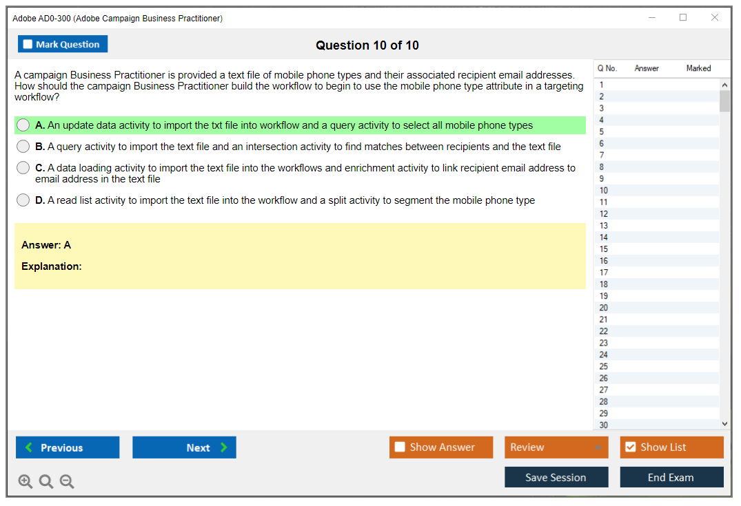 The Adobe AD0-300 exam focuses on the proficiency of candidates in managing Adobe Campaign, including campaign management, data management, and reporting. It is aimed at professionals who use Adobe Campaign in their daily work.