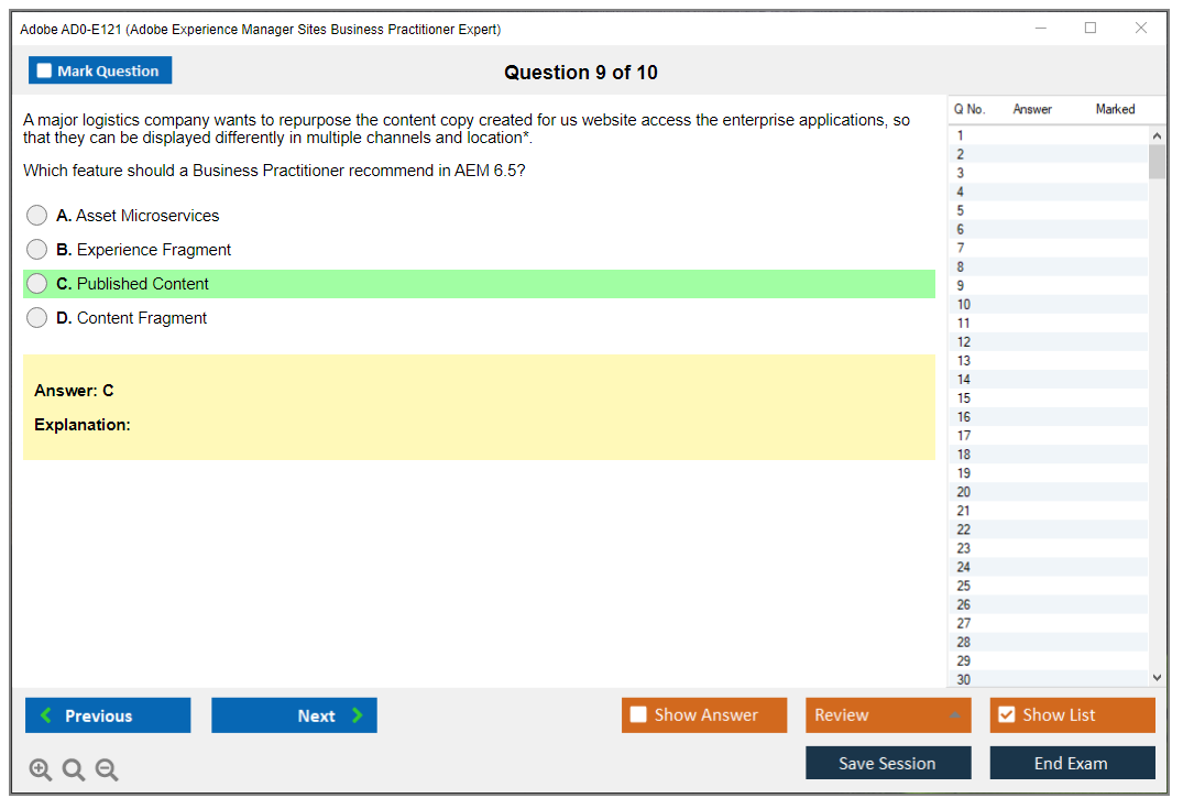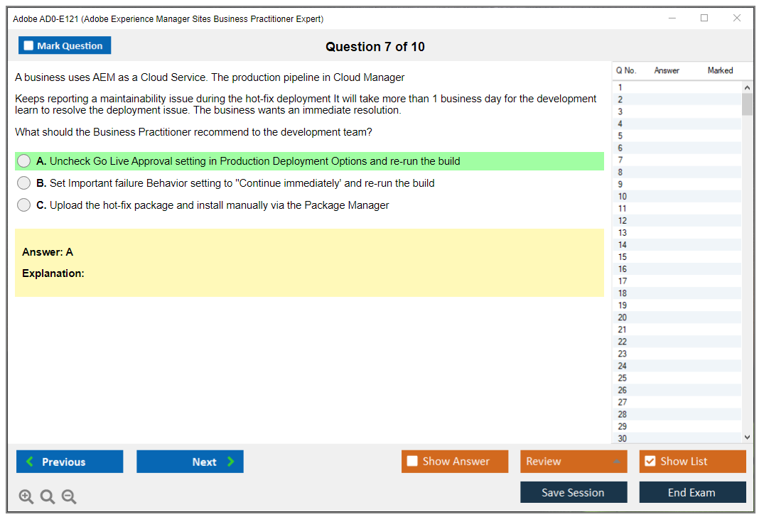 The Adobe AD0-E121 (Adobe Experience Manager Sites Business Practitioner Expert) Exam is designed to validate the skills and knowledge of professionals who work with Adobe Experience Manager (AEM) Sites. It assesses the candidate's ability to manage and deliver AEM Sites projects, including understanding business requirements, configuring AEM, and managing content.