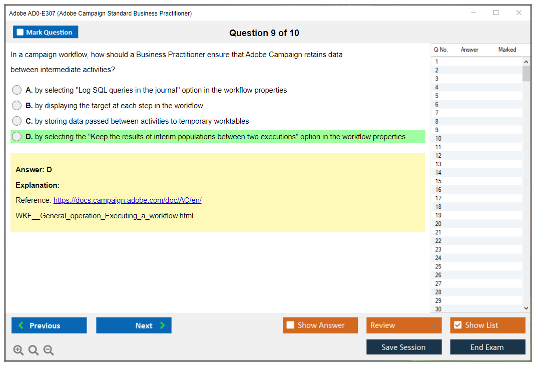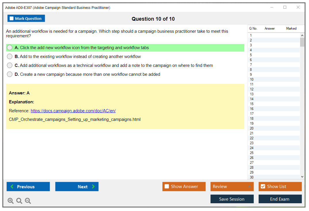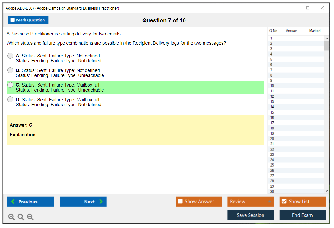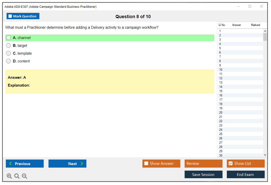 The Adobe AD0-E307 (Adobe Campaign Standard Business Practitioner) Exam is designed to test the knowledge and skills of individuals in managing and implementing Adobe Campaign Standard solutions. It covers various aspects of campaign management, including configuring, executing, and analyzing campaigns.