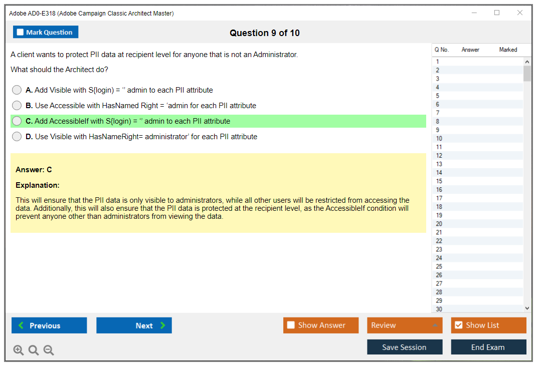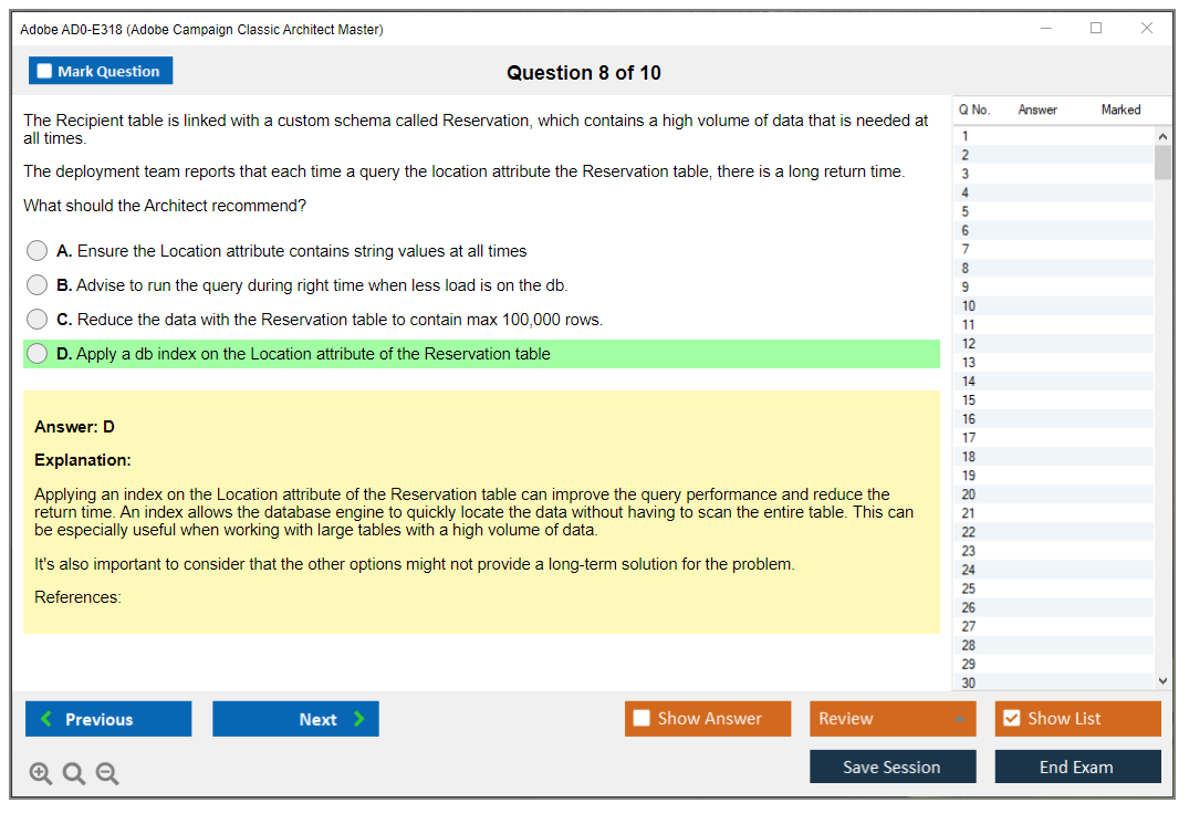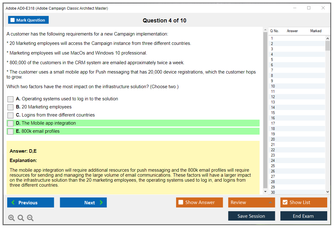 The Adobe AD0-E318 (Adobe Campaign Classic Architect Master) Exam is designed to validate the skills and knowledge of professionals in architecting solutions using Adobe Campaign Classic. It assesses the ability to design, implement, and optimize Adobe Campaign Classic solutions.