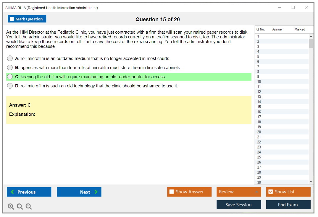 The question format of the AHIMA RHIA Exam is multiple-choice.
