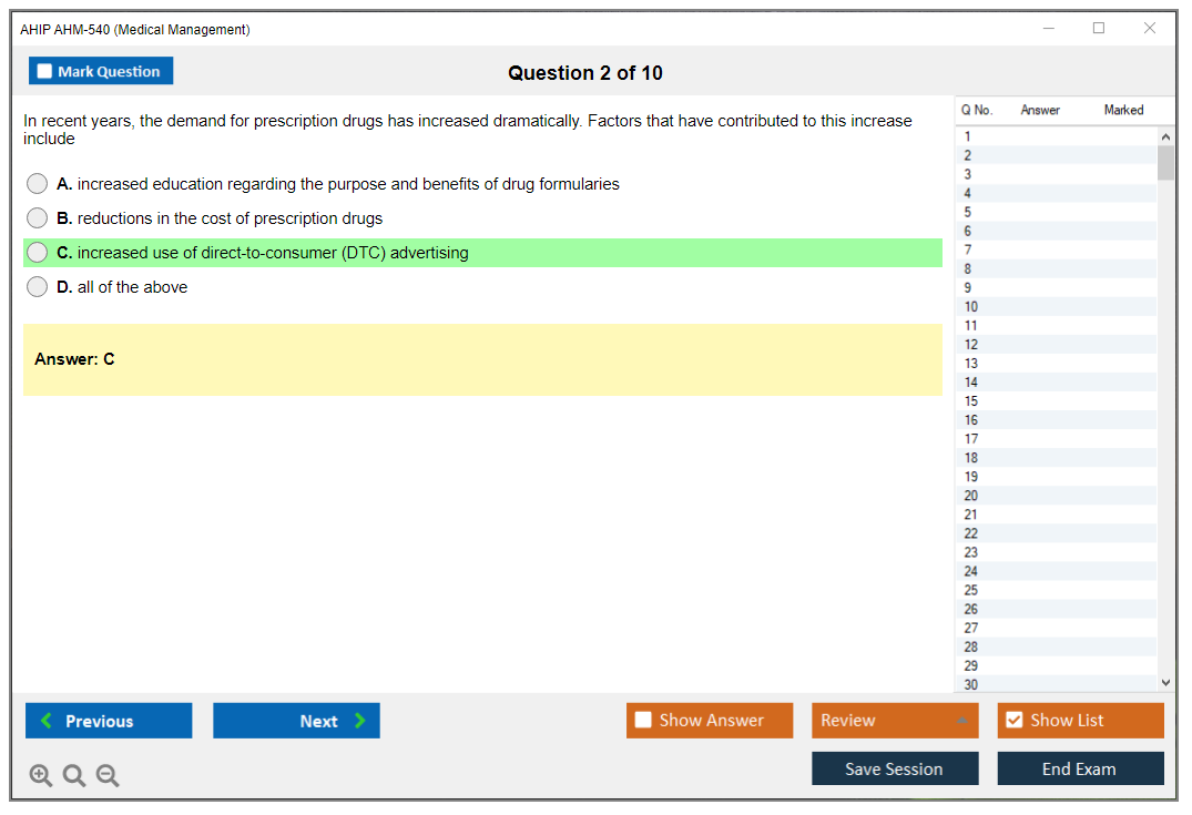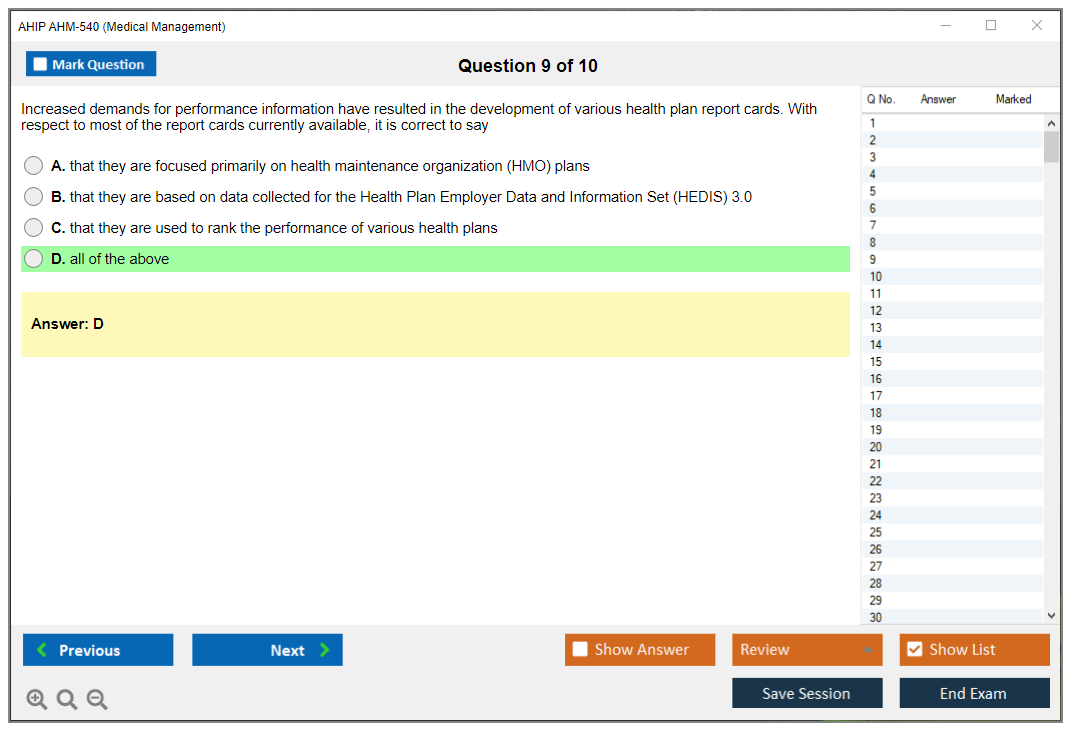 The question format of the AHIP AHM-540 Exam is multiple-choice questions.