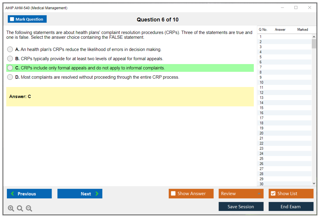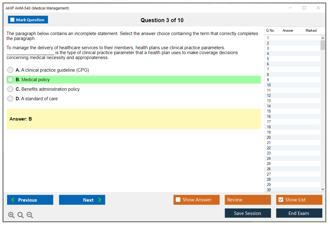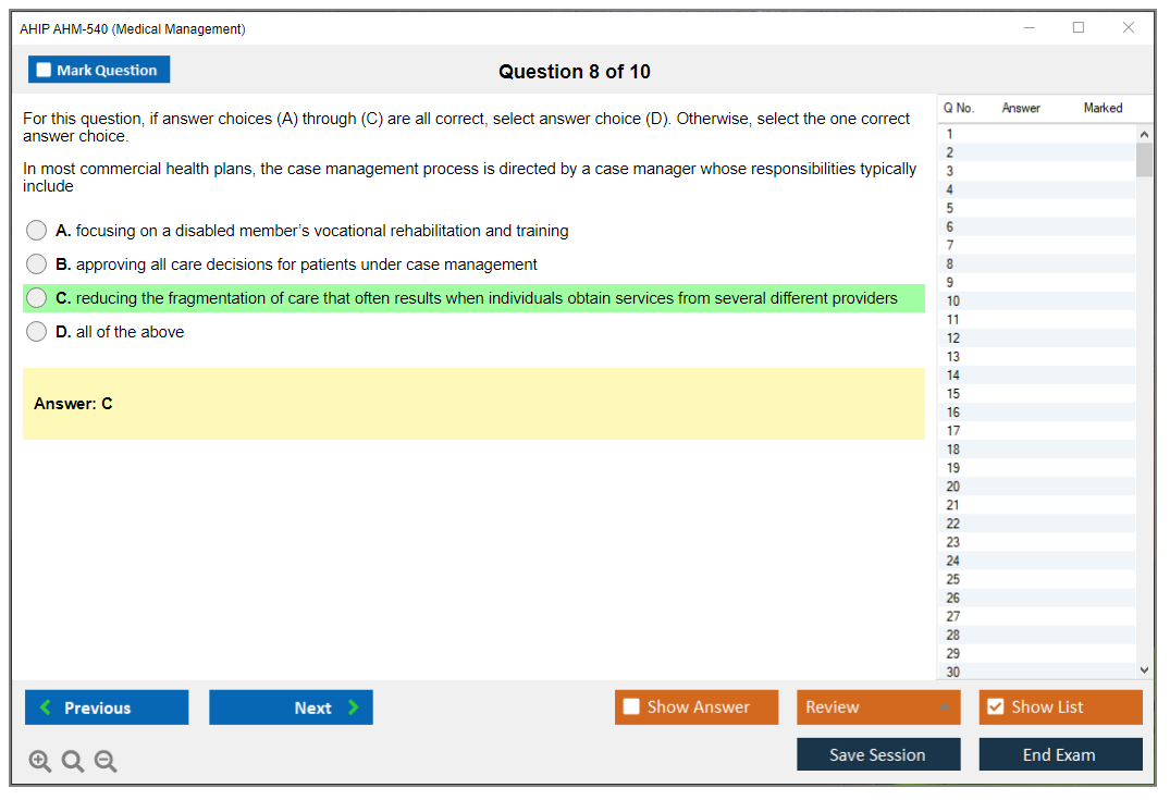 The AHIP AHM-540 Exam is part of the America's Health Insurance Plans (AHIP) certification programs and focuses on medical management principles and practices.
