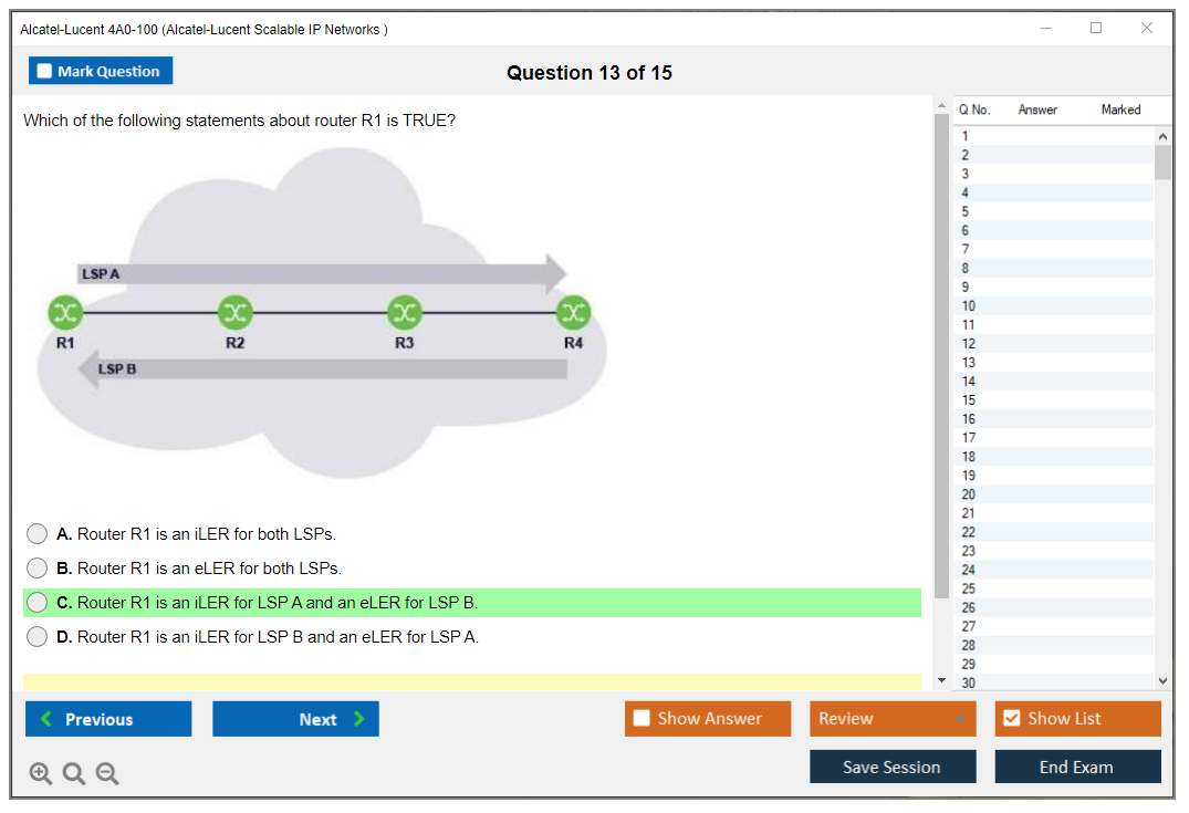 The Alcatel-Lucent 4A0-100 Exam is part of the Nokia Service Routing Certification (SRC) program and serves as a foundational certification. It can lead to more advanced certifications in the SRC track, such as the Nokia Network Routing Specialist I (NRS I) and Nokia Network Routing Specialist II (NRS II).