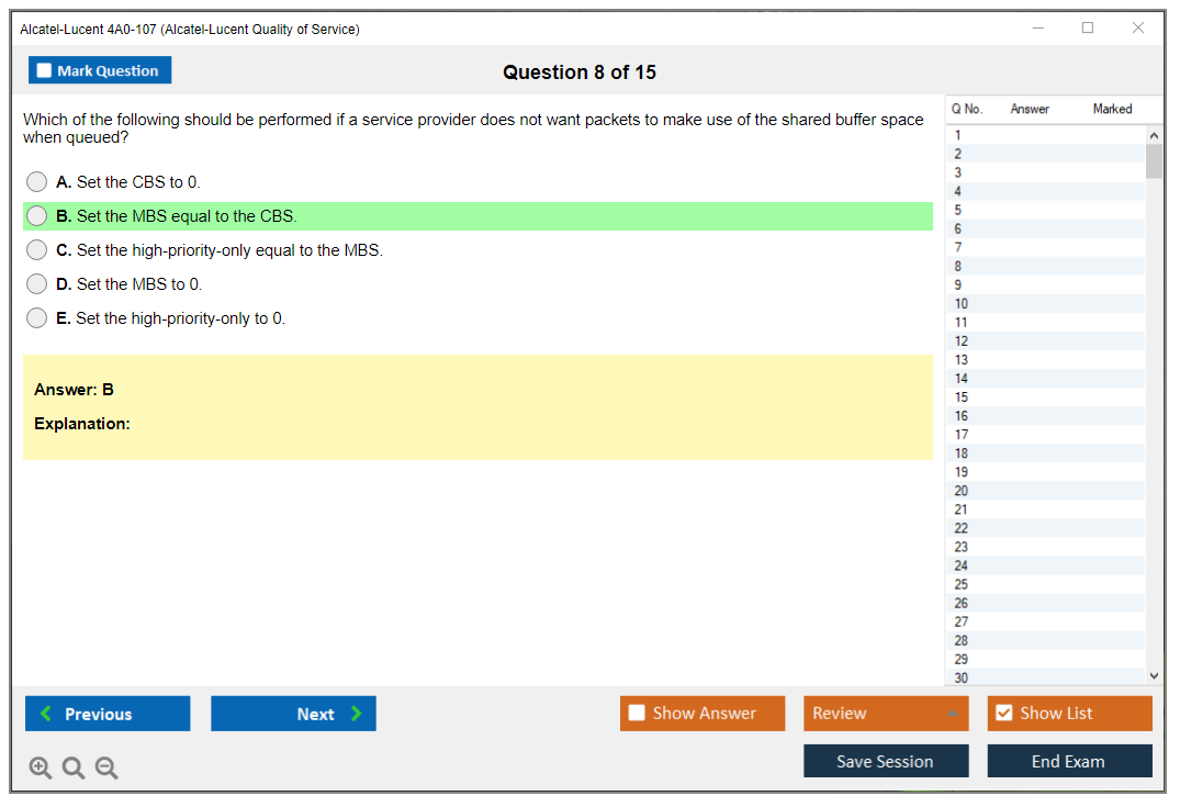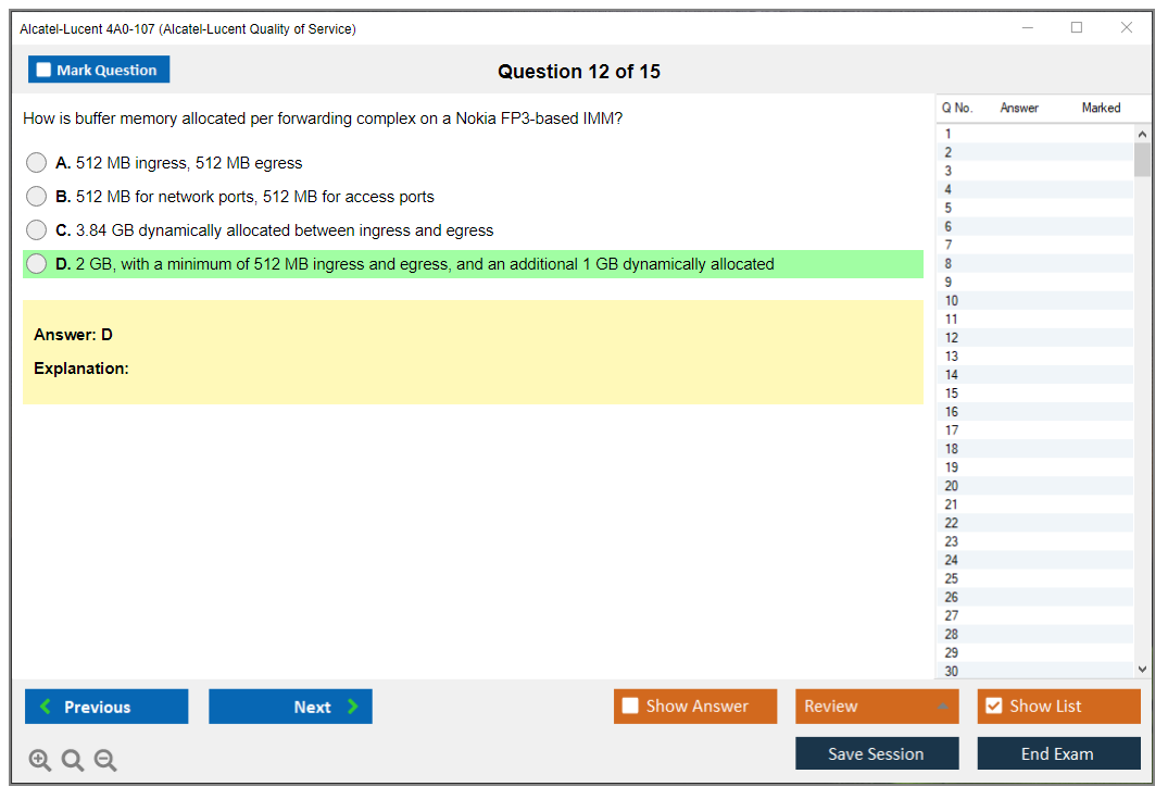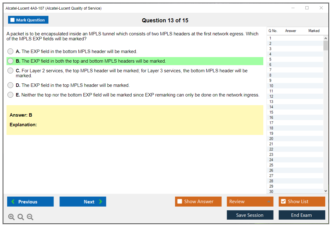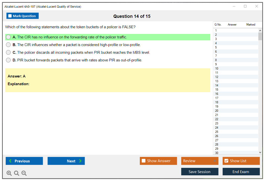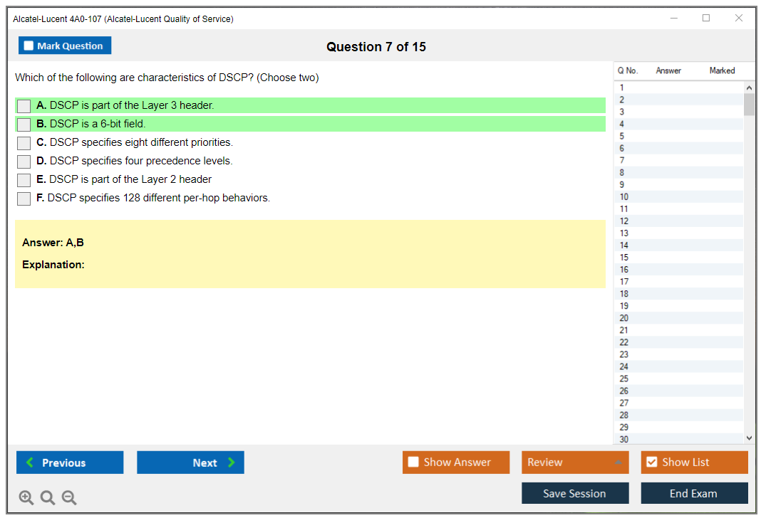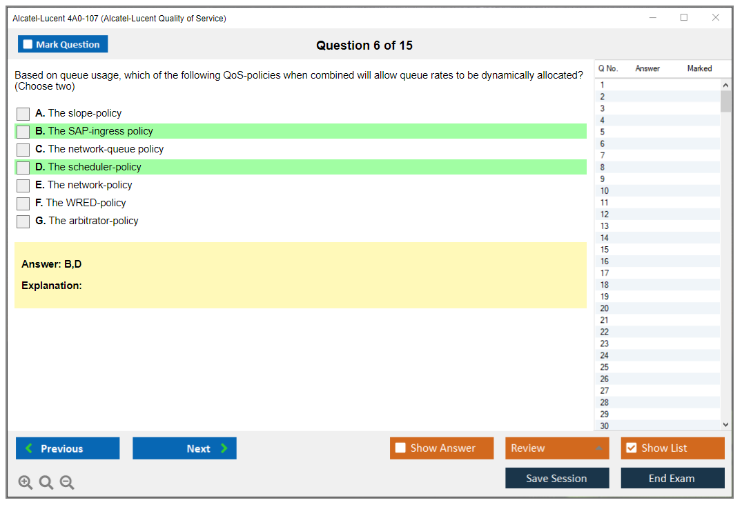 The Alcatel-Lucent 4A0-107 (Nokia Quality of Service) Exam is designed to test the knowledge and skills of candidates in implementing and managing quality of service (QoS) in Nokia networks. It is part of the Nokia Service Routing Certification (SRC) program.