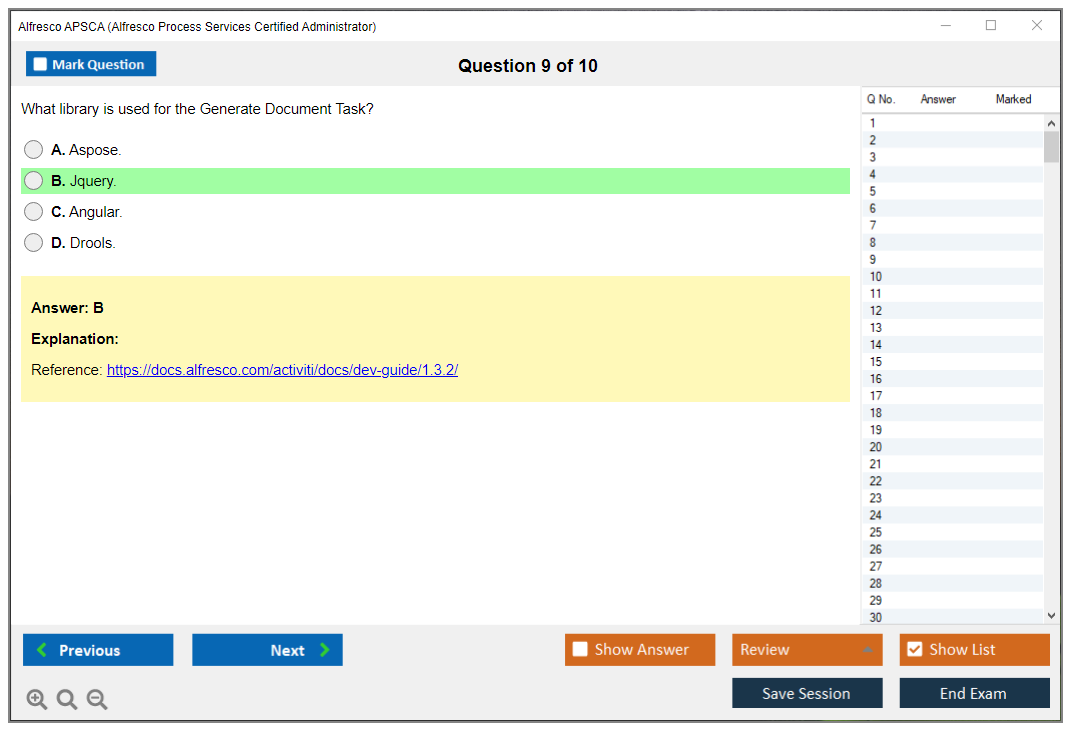 The Alfresco Process Services Certified Administrator (APSCA) exam is designed to validate the knowledge and skills of professionals responsible for administering Alfresco Process Services environments. It focuses on areas such as installation, configuration, management, and troubleshooting of Alfresco Process Services.