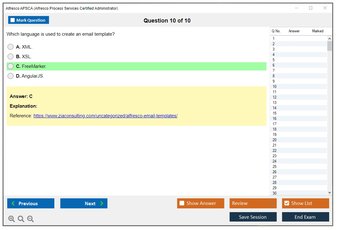 What are the Number of Questions Asked in Alfresco APSCA Exam?