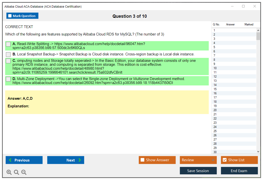 What are the Sample Questions of Alibaba Cloud ACA-Database Exam?