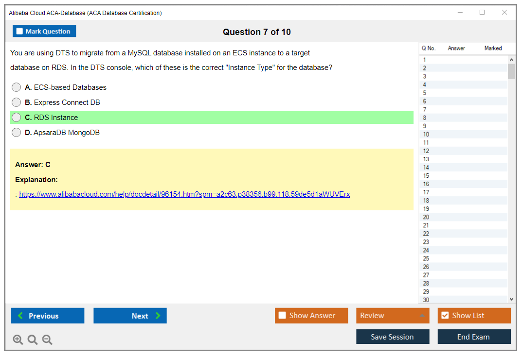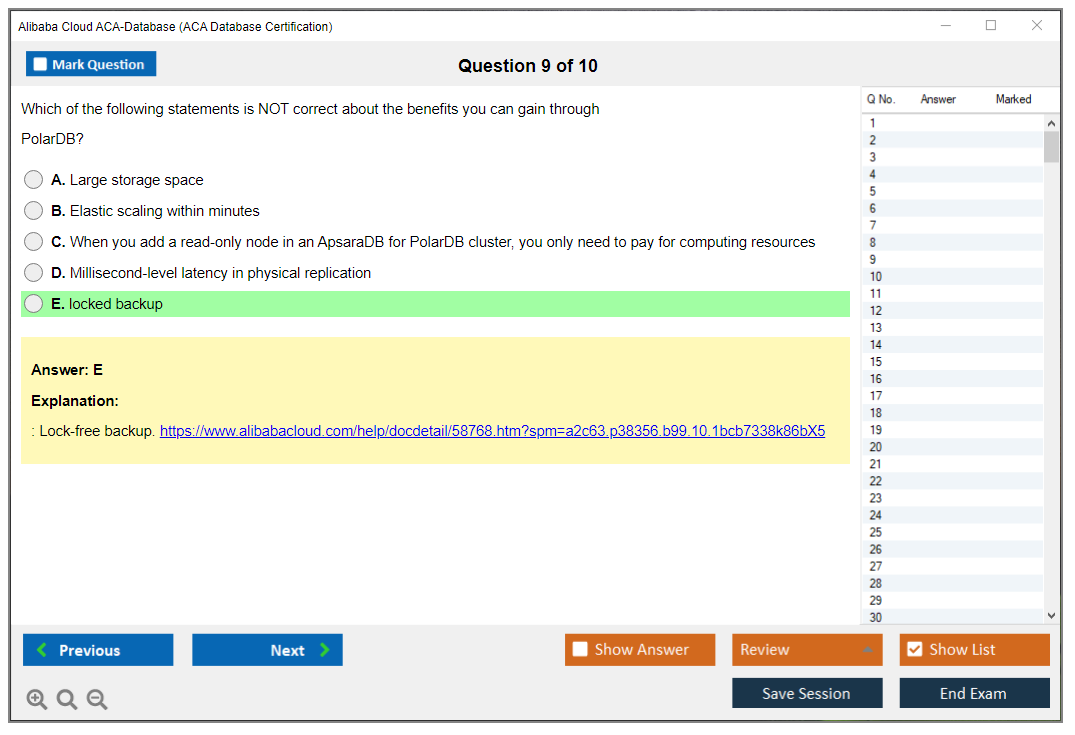 Sample questions for the Alibaba Cloud ACA-Database Exam can be found on the official Alibaba Cloud certification website and in study guides provided by Alibaba Cloud.