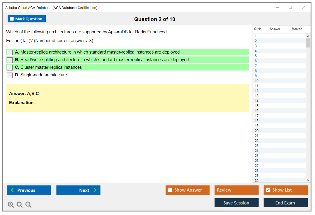 What is the Question Format of Alibaba Cloud ACA-Database Exam?