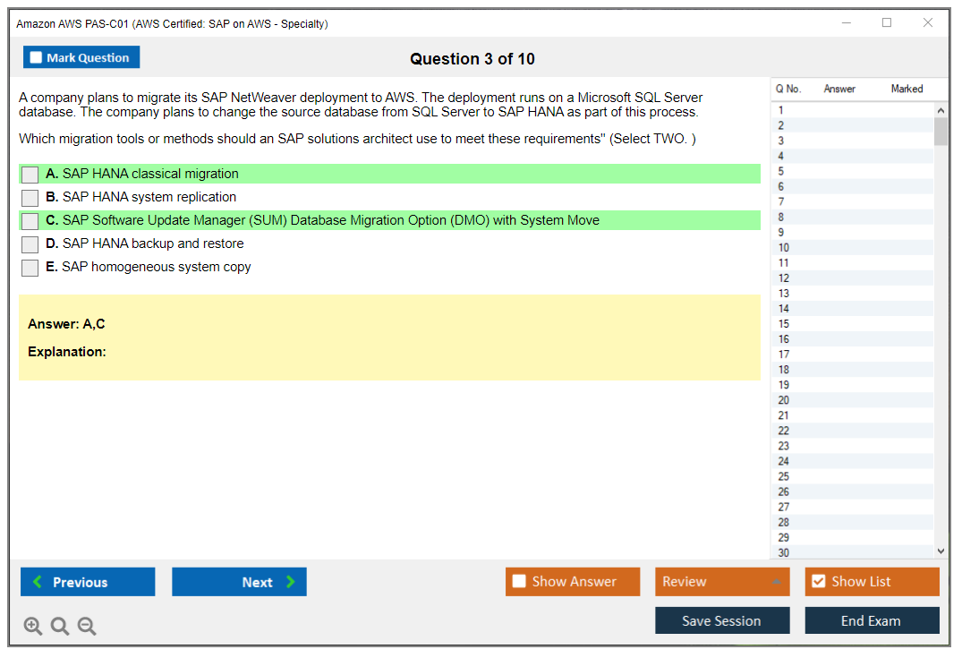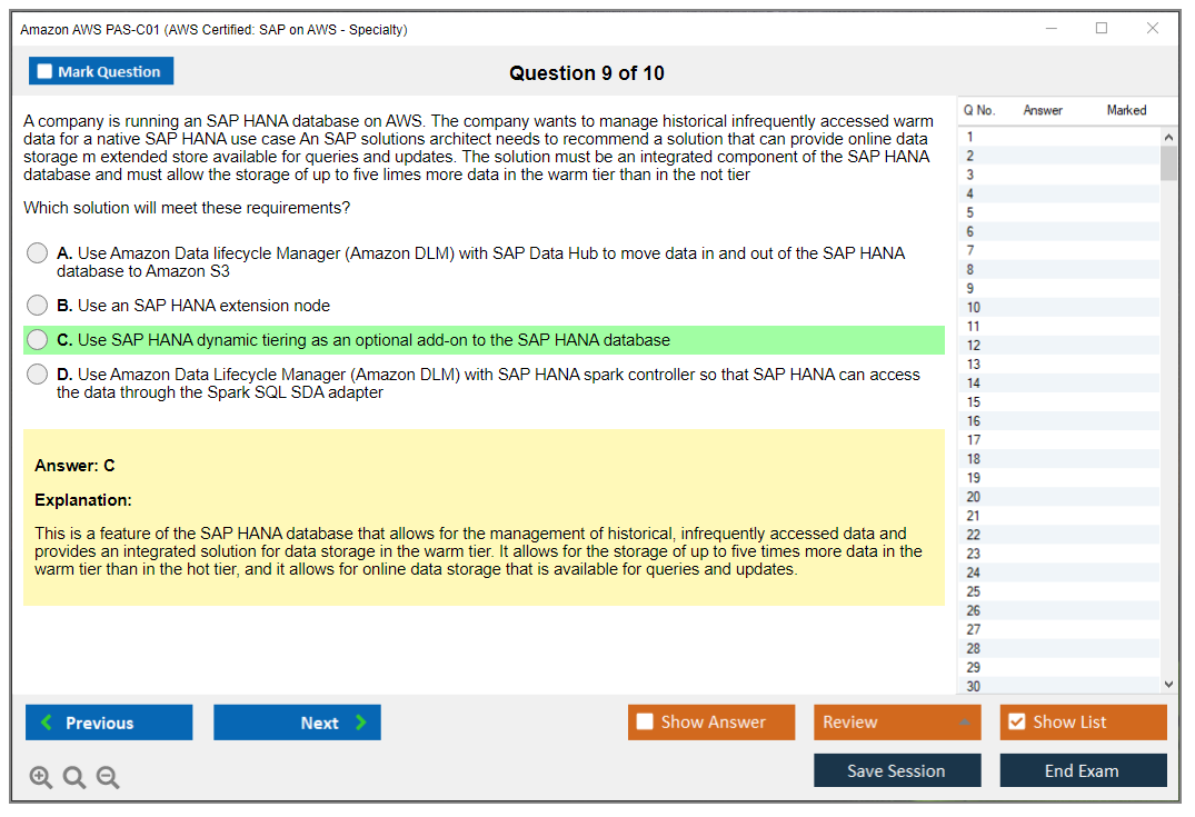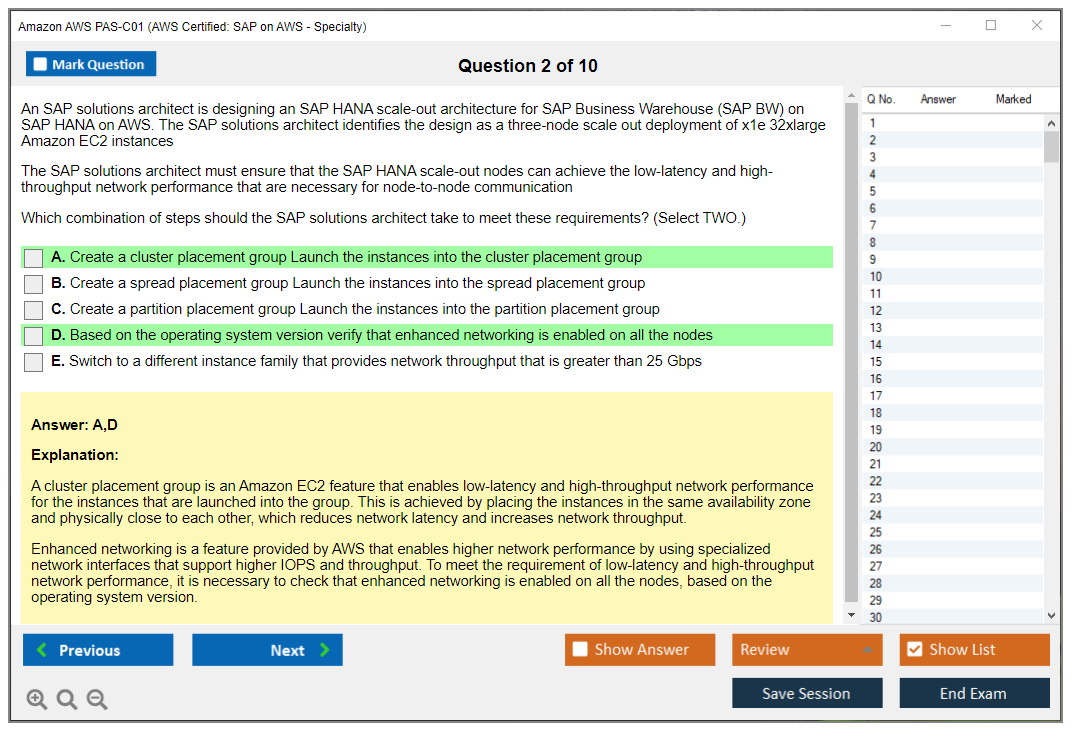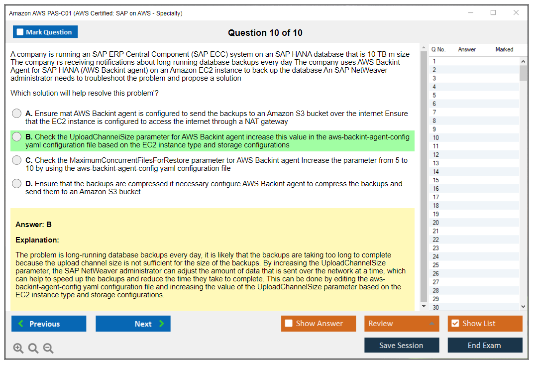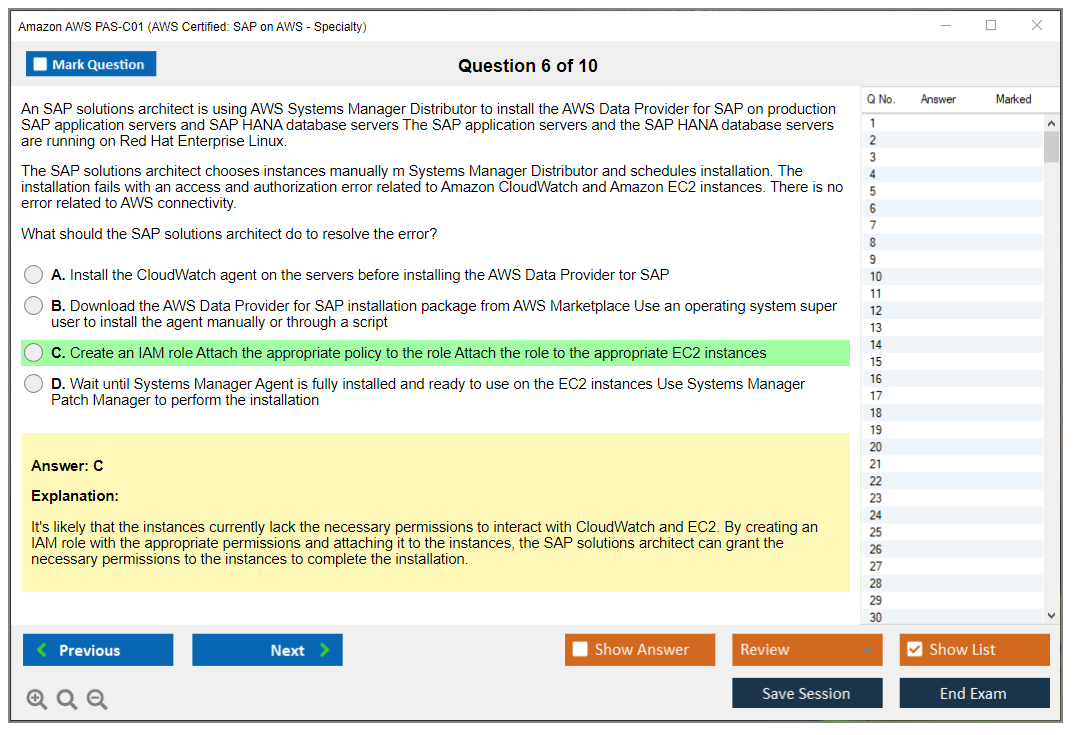 The Amazon AWS PAS-C01 (AWS Certified: SAP on AWS - Specialty) exam is designed to validate the expertise of individuals in deploying, managing, and operating SAP workloads on AWS. It focuses on the candidate's ability to design and implement SAP solutions that are highly available, fault-tolerant, and scalable on the AWS platform.