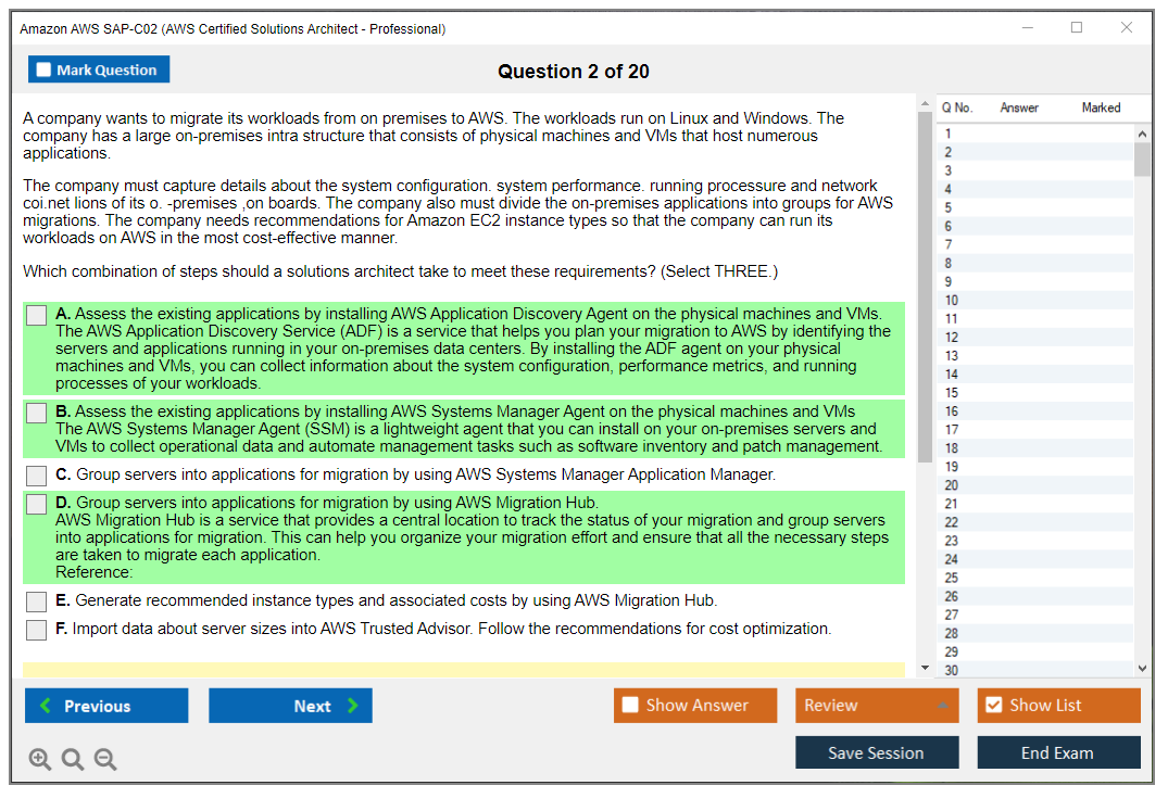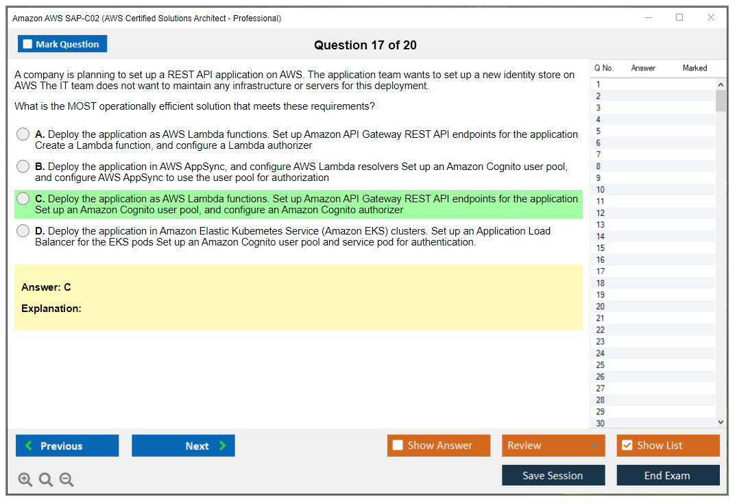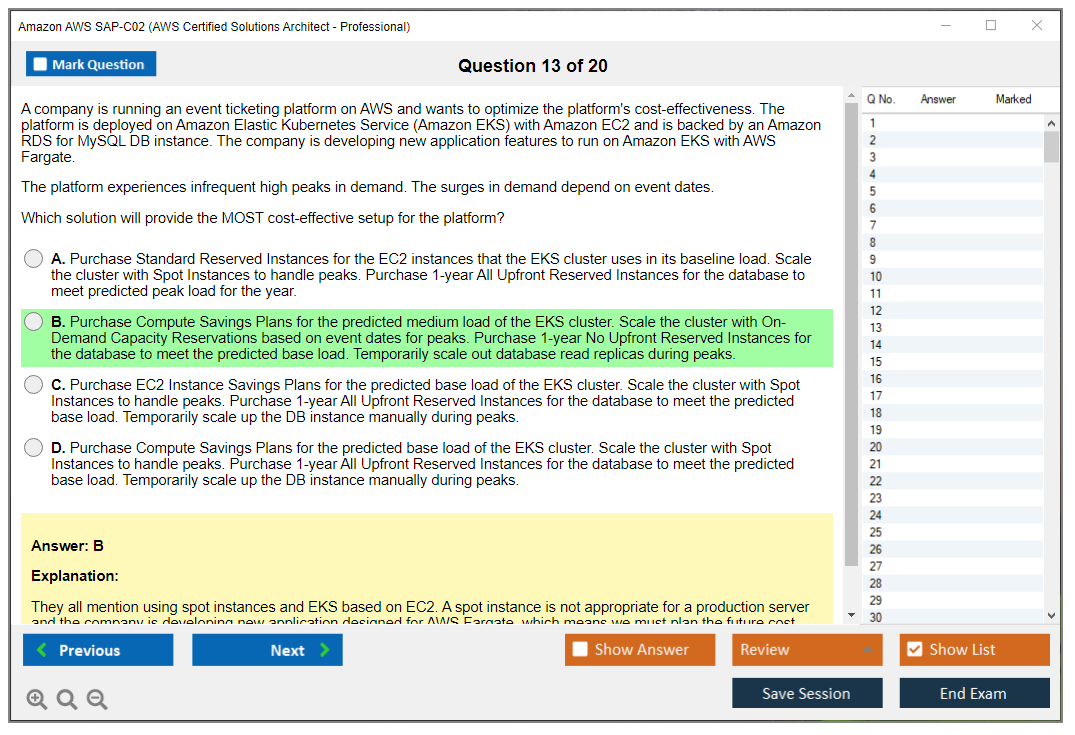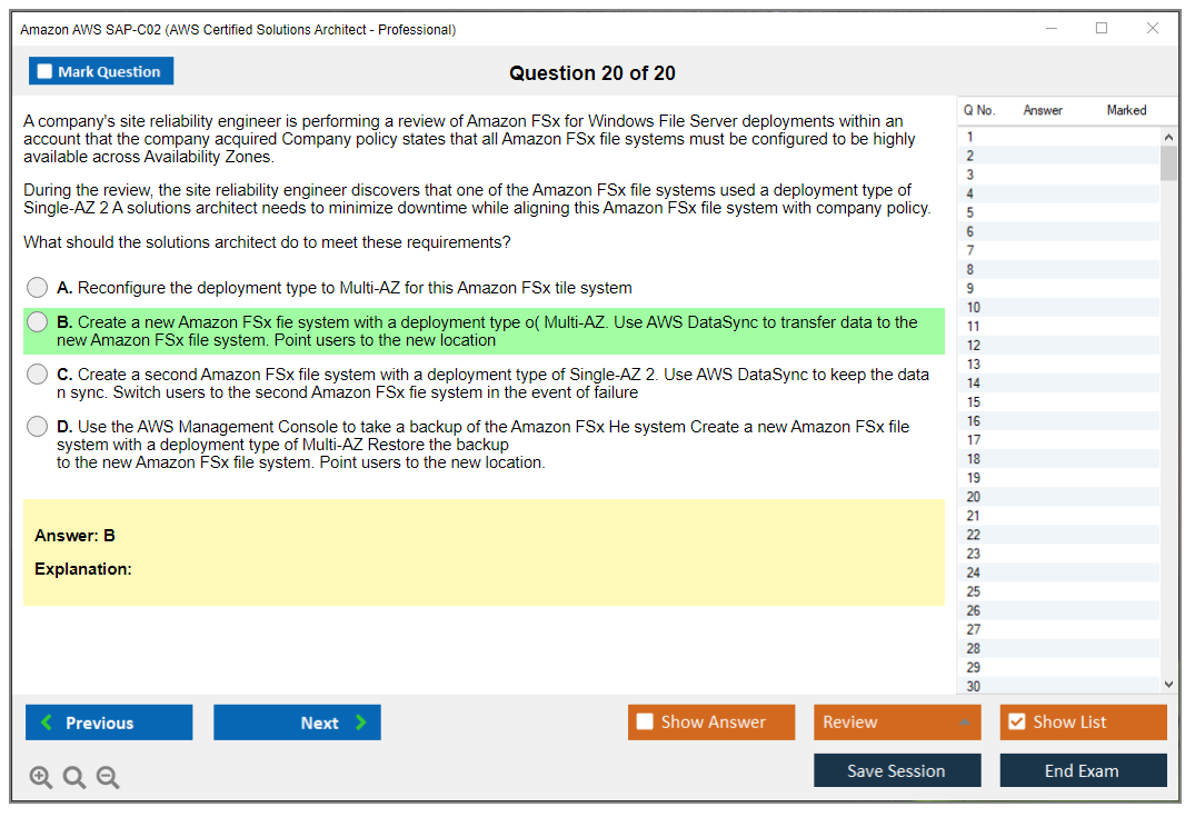 The question format of the Amazon AWS SAP-C02 Exam includes multiple-choice and multiple-response questions.
