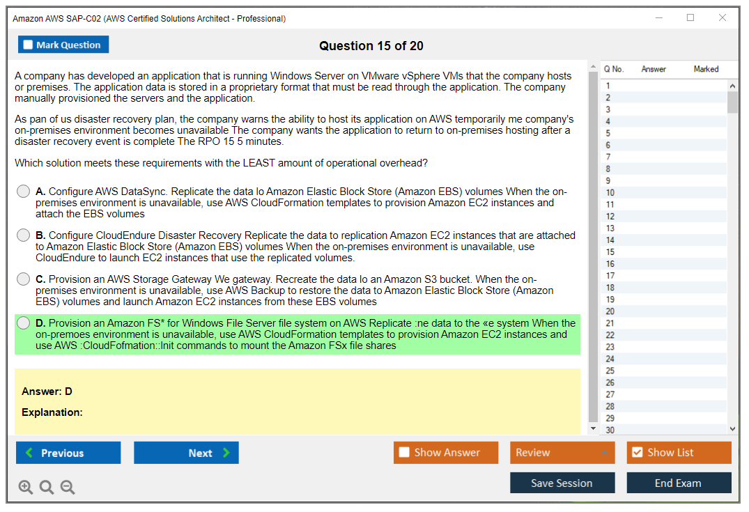 Sample questions for the Amazon AWS SAP-C02 Exam can be found on the official AWS certification website or through various AWS training resources.
