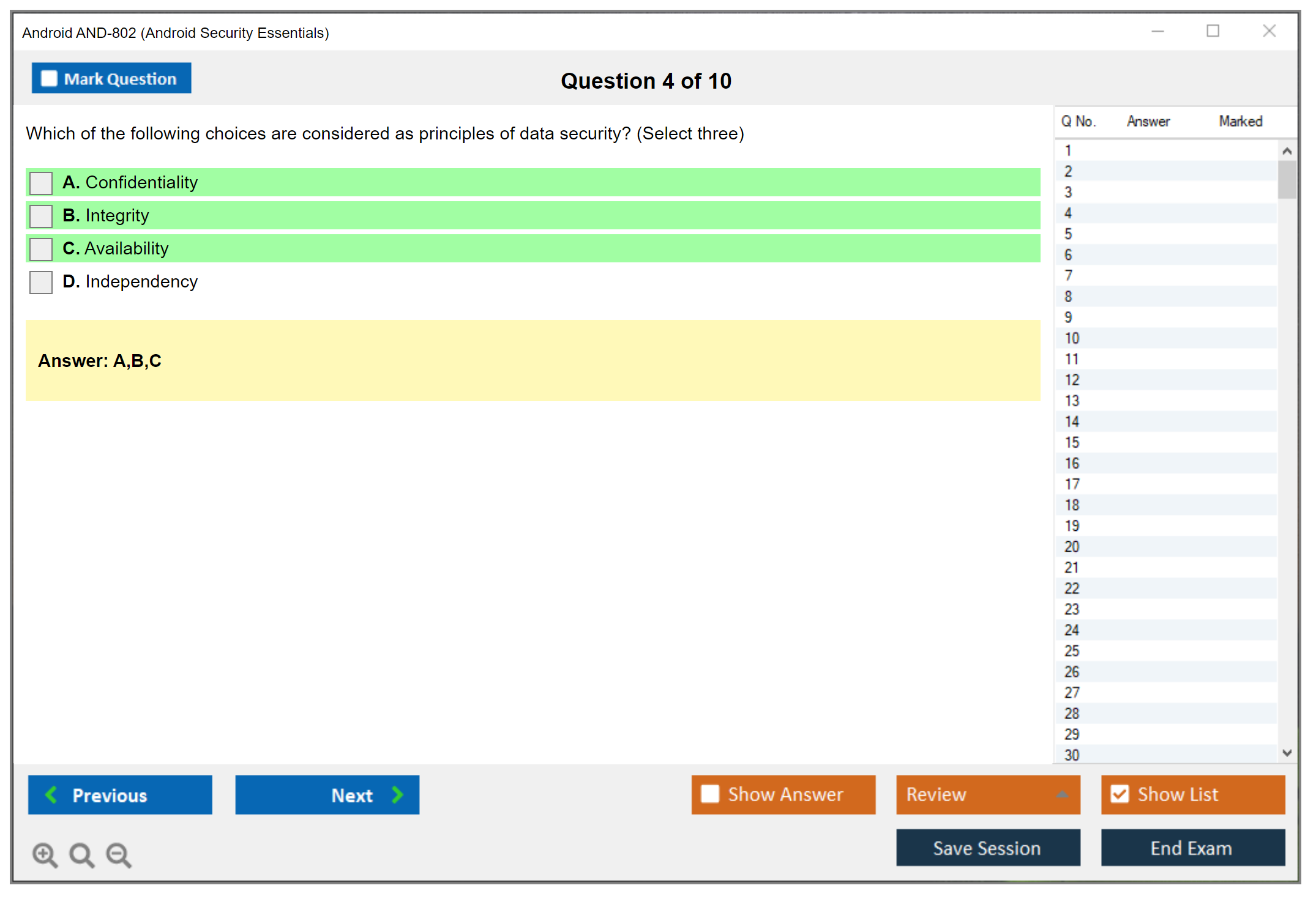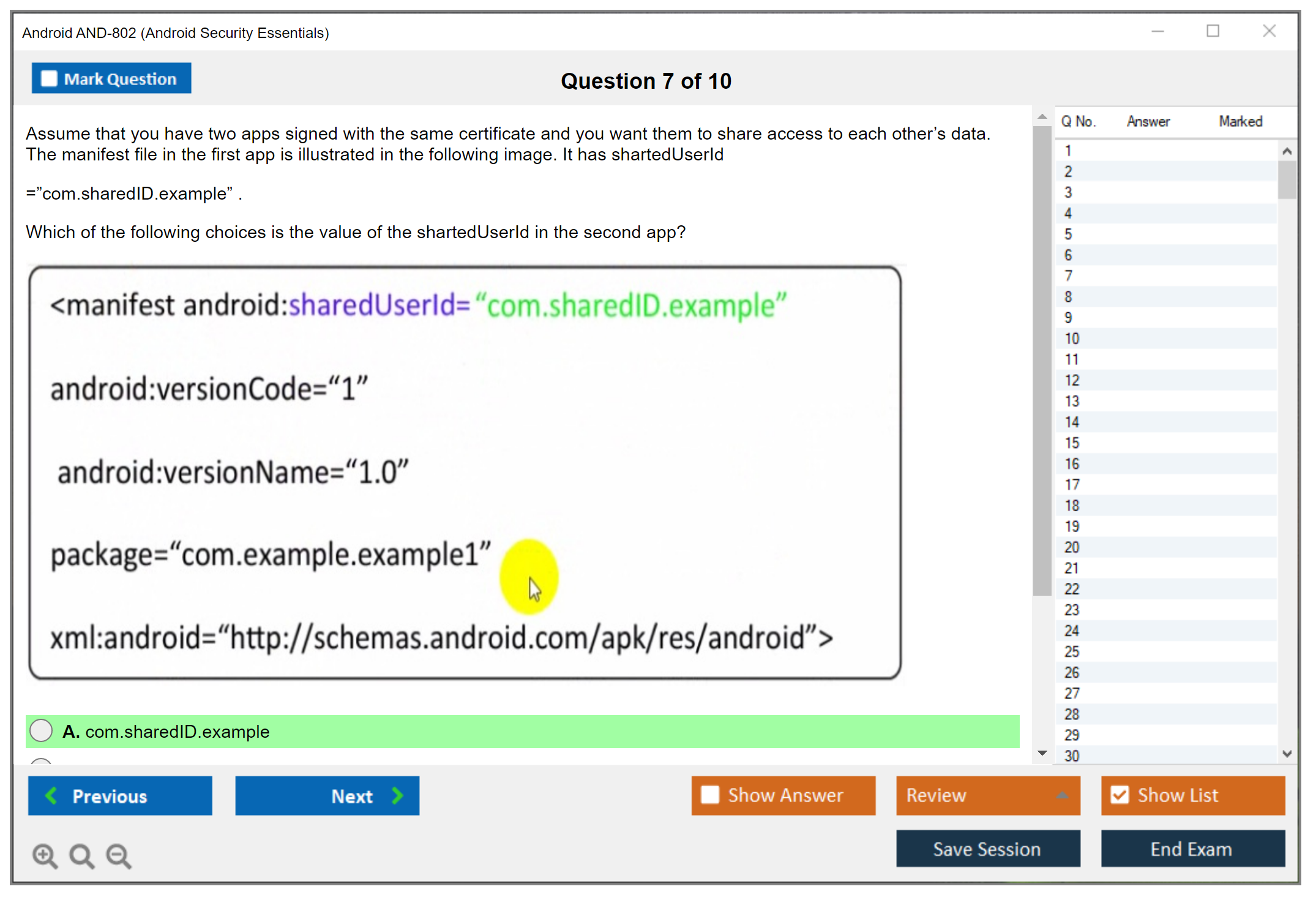 The Android AND-802 exam focuses on assessing the candidate's understanding and ability to implement security measures in Android applications and devices. It is part of the Android Certified Application Developer (ACAD) program.