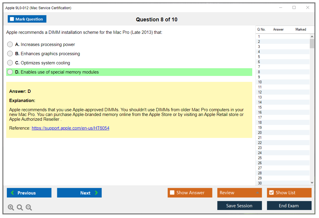 The question format of the Apple 9L0-012 Exam includes multiple-choice questions, scenario-based questions, and practical troubleshooting questions.