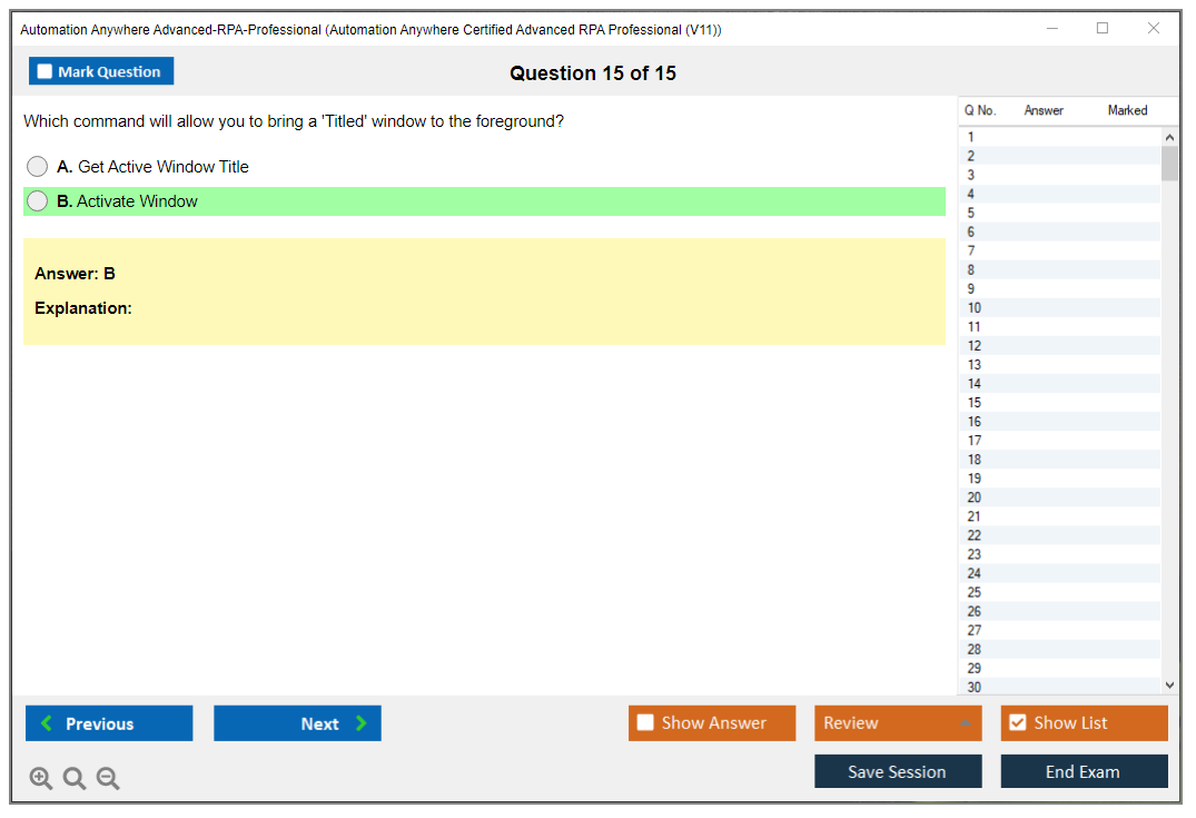The Automation Anywhere Advanced-RPA-Professional exam is a certification test that assesses an individual's expertise in automating business processes using Automation Anywhere's RPA platform. It is aimed at professionals who have advanced knowledge and experience with Automation Anywhere tools and want to validate their skills.