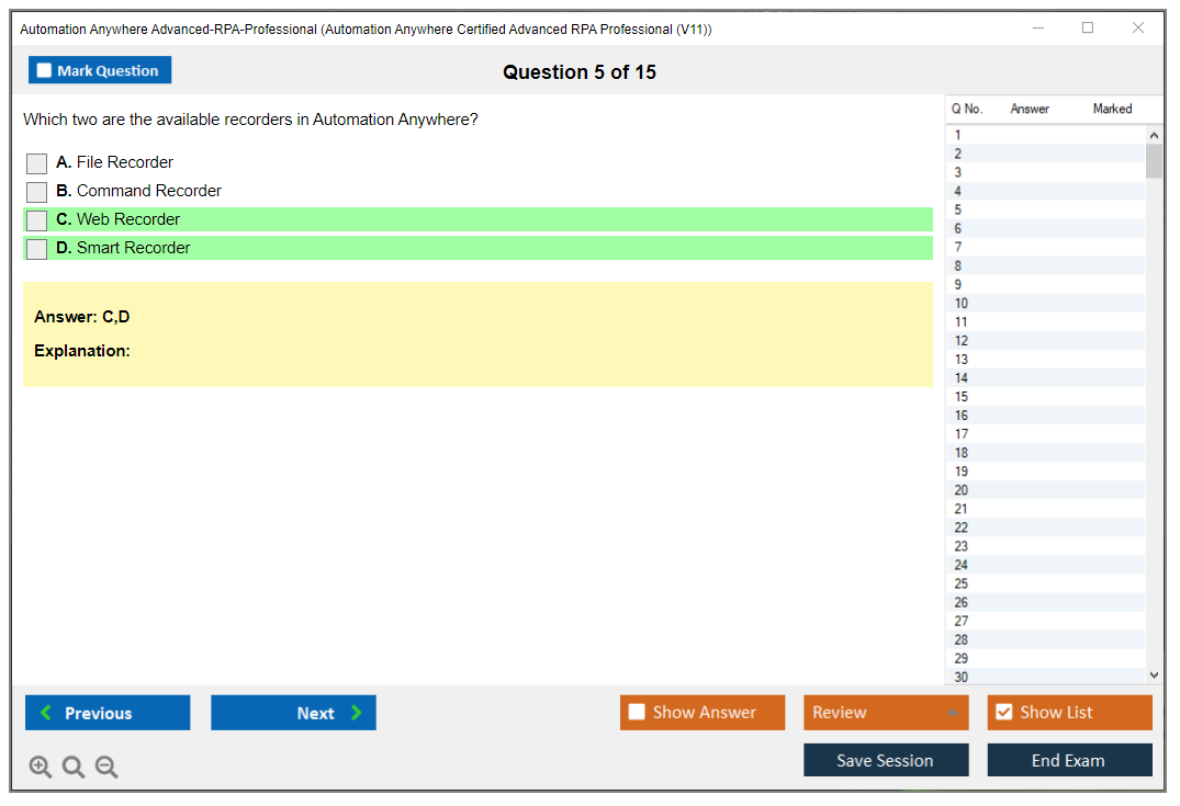 The Automation Anywhere Advanced-RPA-Professional (Automation Anywhere Certified Advanced RPA Professional (V11)) exam is designed to validate the skills and knowledge required to be proficient in using Automation Anywhere's RPA platform. This certification demonstrates an individual's ability to automate complex business processes using Automation Anywhere tools and technologies.