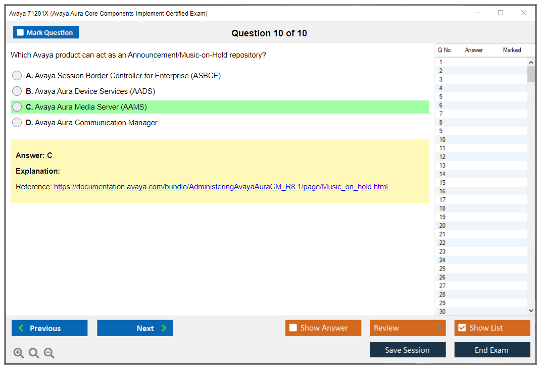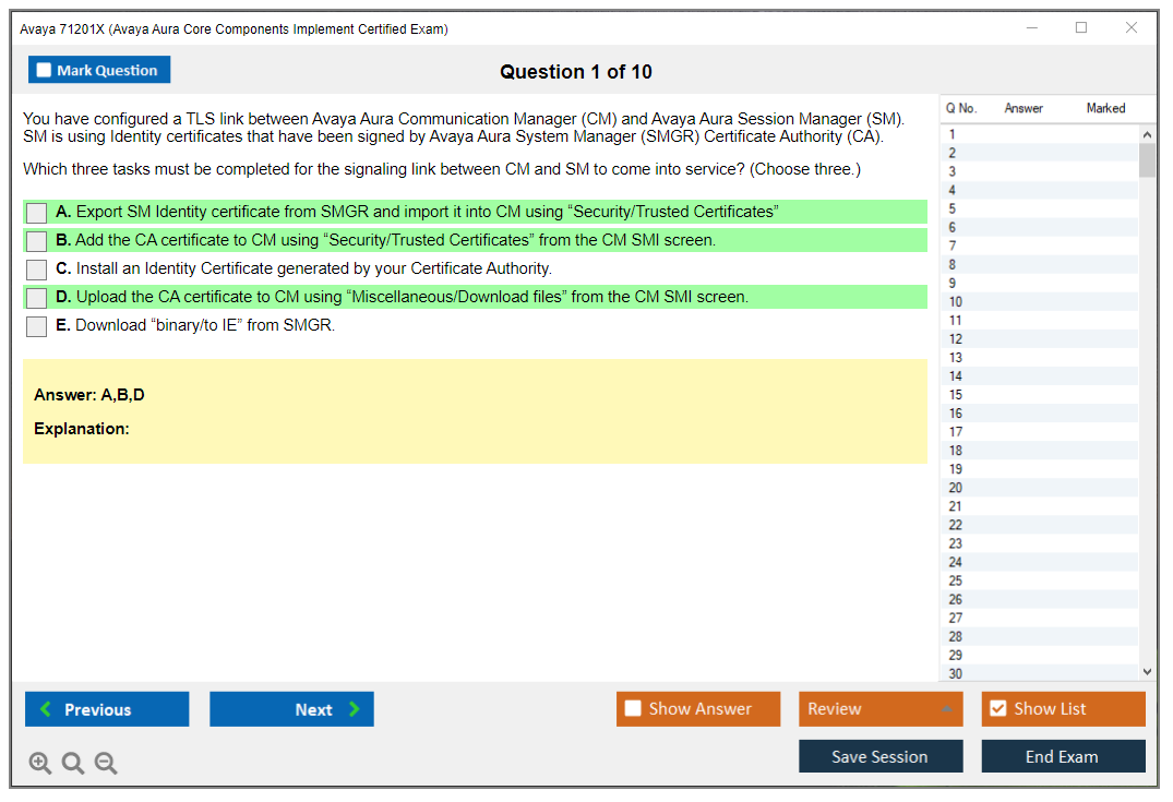 The Avaya 71201X (Avaya AuraCore Components Implement Certified Exam) is a certification exam designed to test the knowledge and skills of individuals in implementing Avaya Aura Core Components.