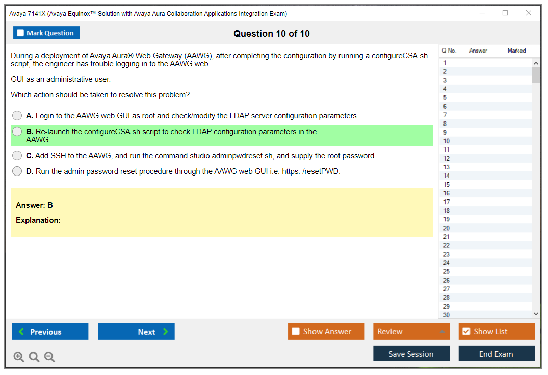 The Avaya 7141X (Avaya Equinox™ Solution with Avaya Aura Collaboration Applications Integration Exam) is designed to test your knowledge and skills in integrating Avaya Equinox™ with Avaya Aura Collaboration Applications. It assesses your ability to implement, configure, and troubleshoot these solutions.