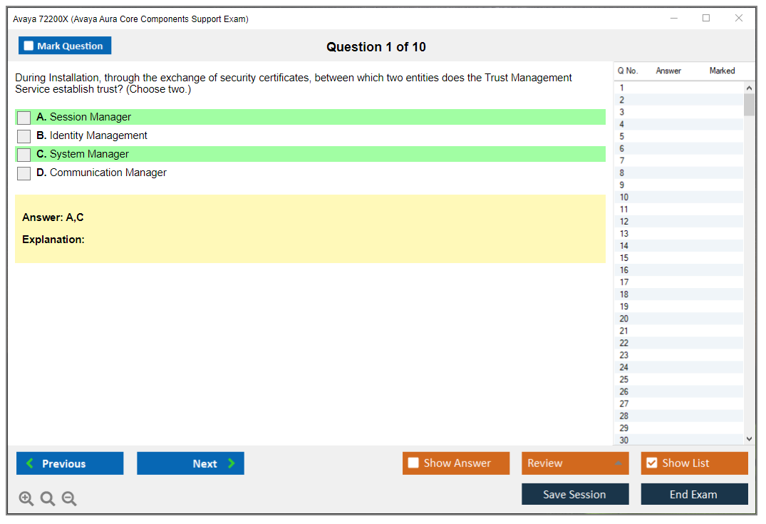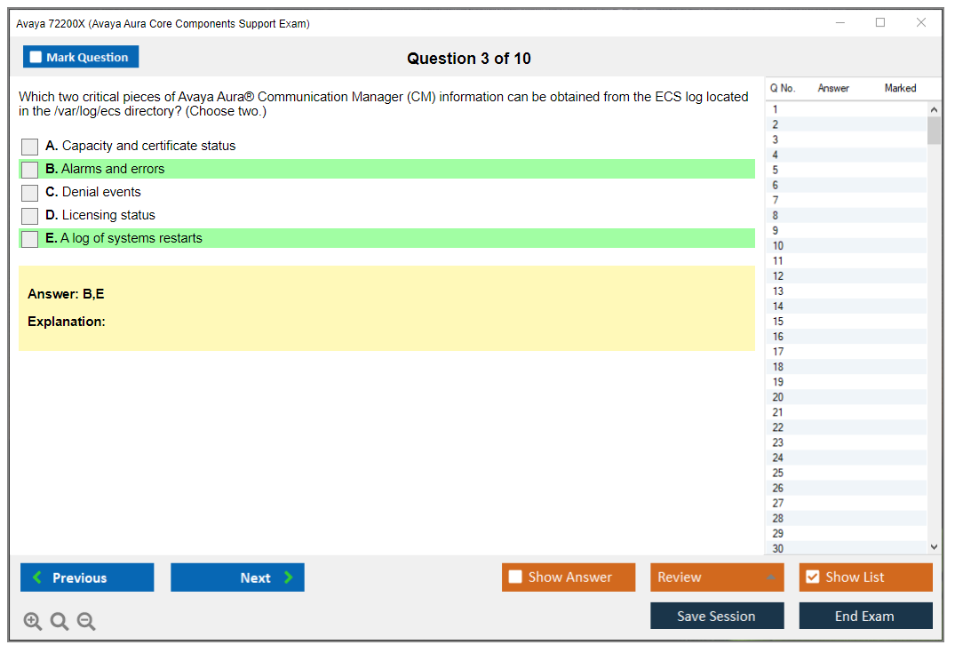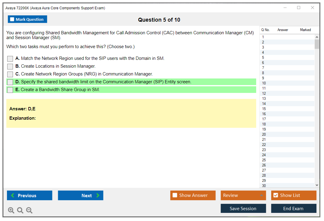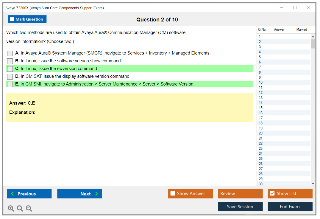 Note: Avaya 72200X (Avaya Aura Core Components Support Exam) will not receive any new updates.