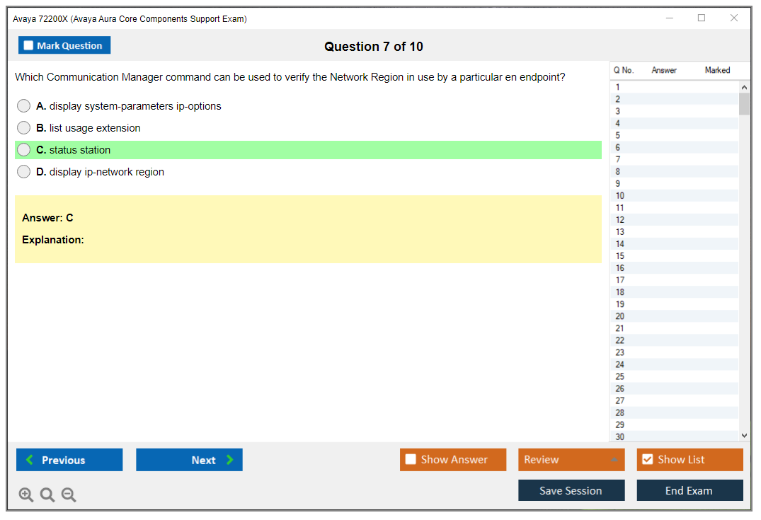 The question format of the Avaya 72200X Exam includes multiple-choice questions, drag and drop, and scenario-based questions.
