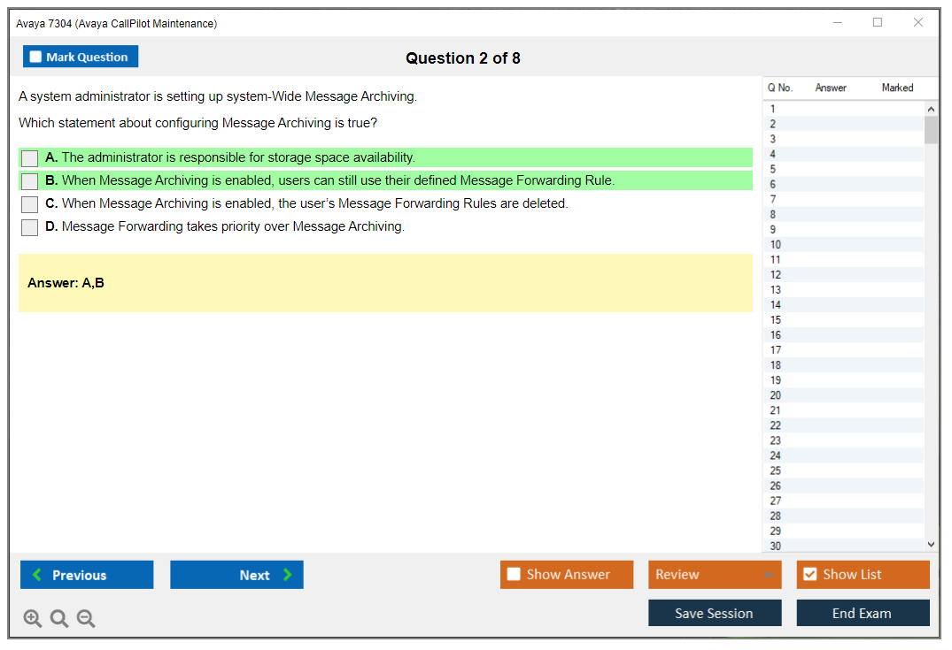 The question format of the Avaya 7304 Exam includes multiple-choice questions, drag-and-drop questions, and simulation-based questions.