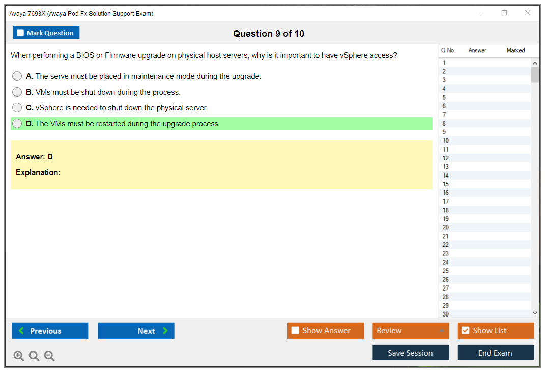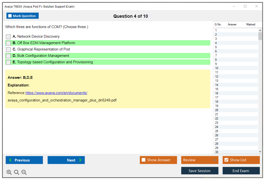 The Avaya 7693X (Avaya Pod Fx Solution Support Exam) is designed to validate the knowledge and skills of individuals in supporting the Avaya Pod Fx solution. It covers various aspects of installation, configuration, maintenance, and troubleshooting of the Avaya Pod Fx solution.