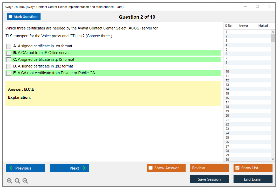 The question format of the Avaya 78950X Exam includes multiple-choice, multiple response, and scenario-based questions.