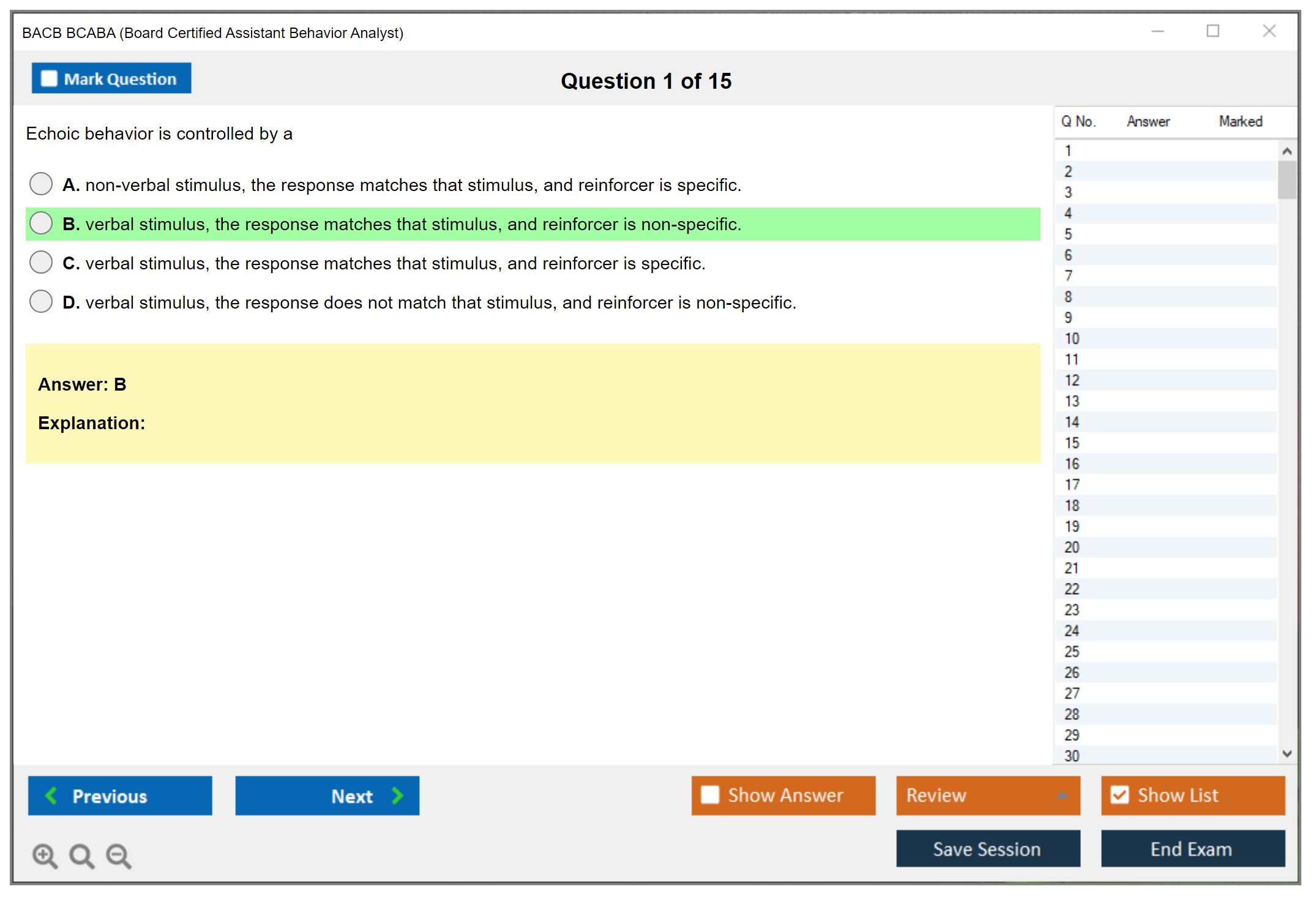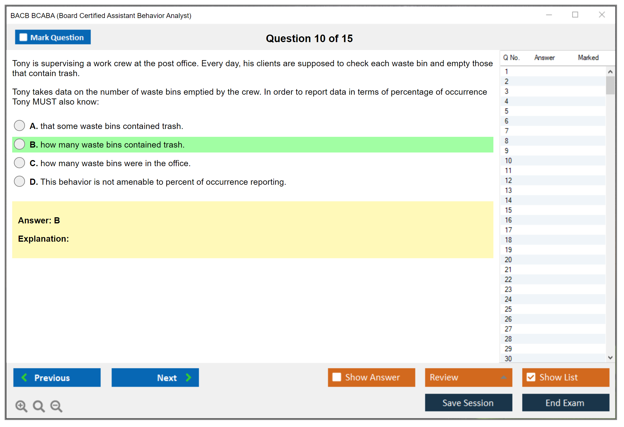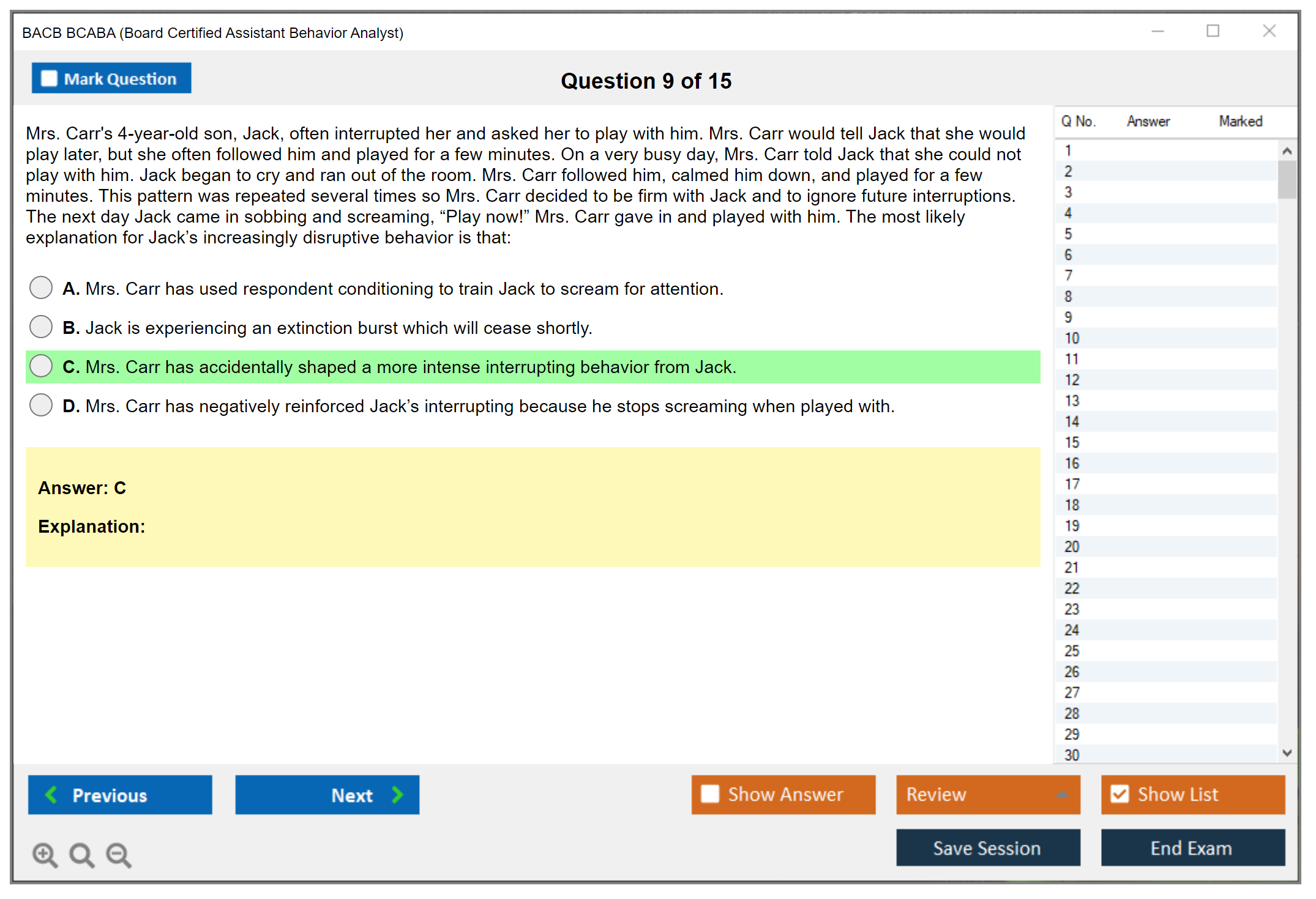 The BACB BCABA (Board Certified Assistant Behavior Analyst) exam is designed to assess the knowledge and skills of individuals seeking certification as an assistant behavior analyst. This certification is offered by the Behavior Analyst Certification Board (BACB).