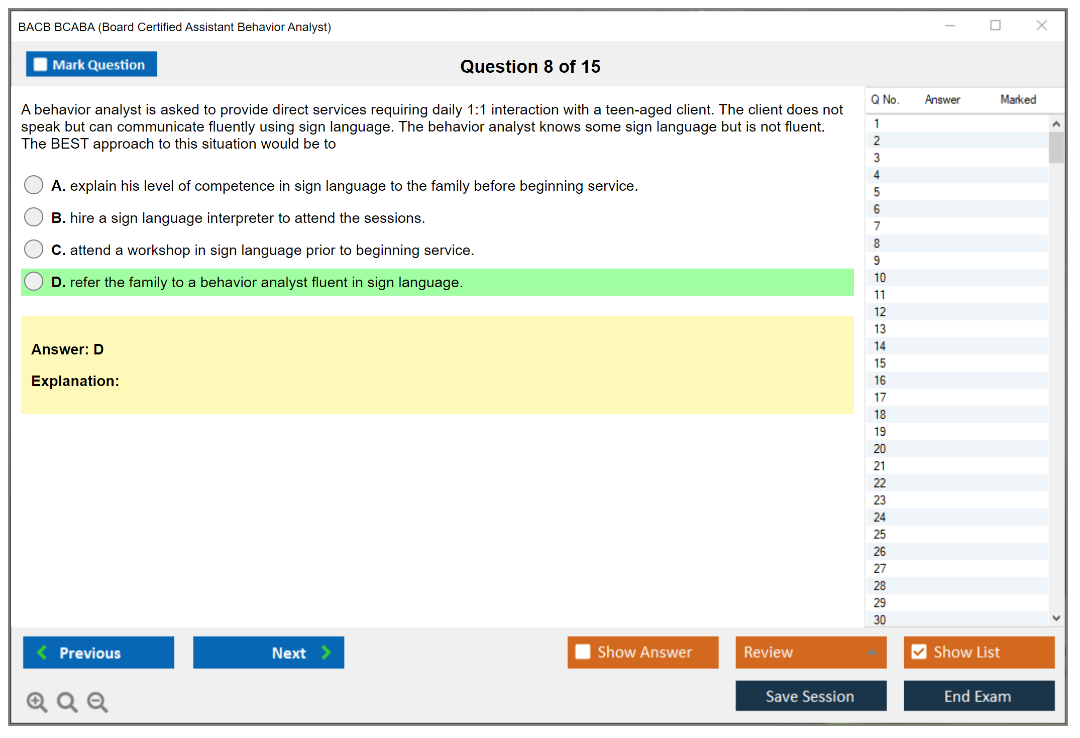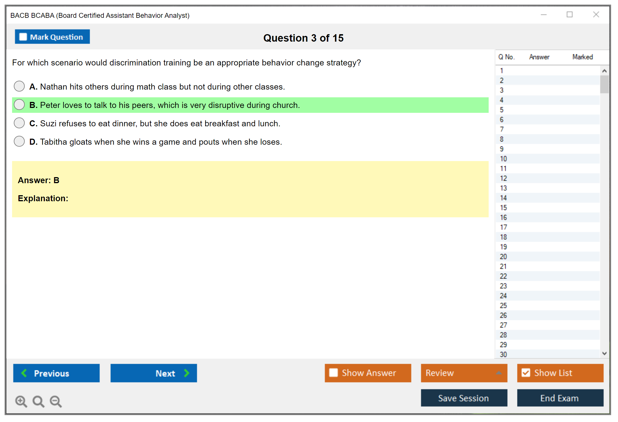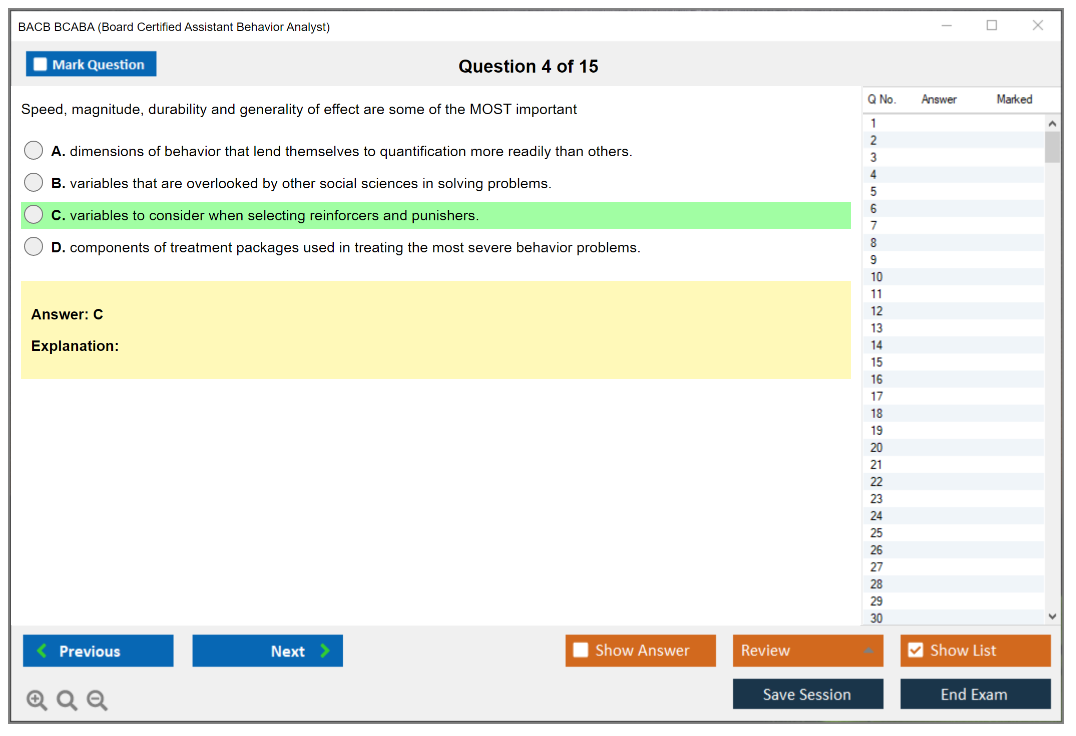 The BACB BCABA (Board Certified Assistant Behavior Analyst) exam is designed to assess the knowledge and skills of individuals seeking certification as an assistant behavior analyst. This certification is offered by the Behavior Analyst Certification Board (BACB).