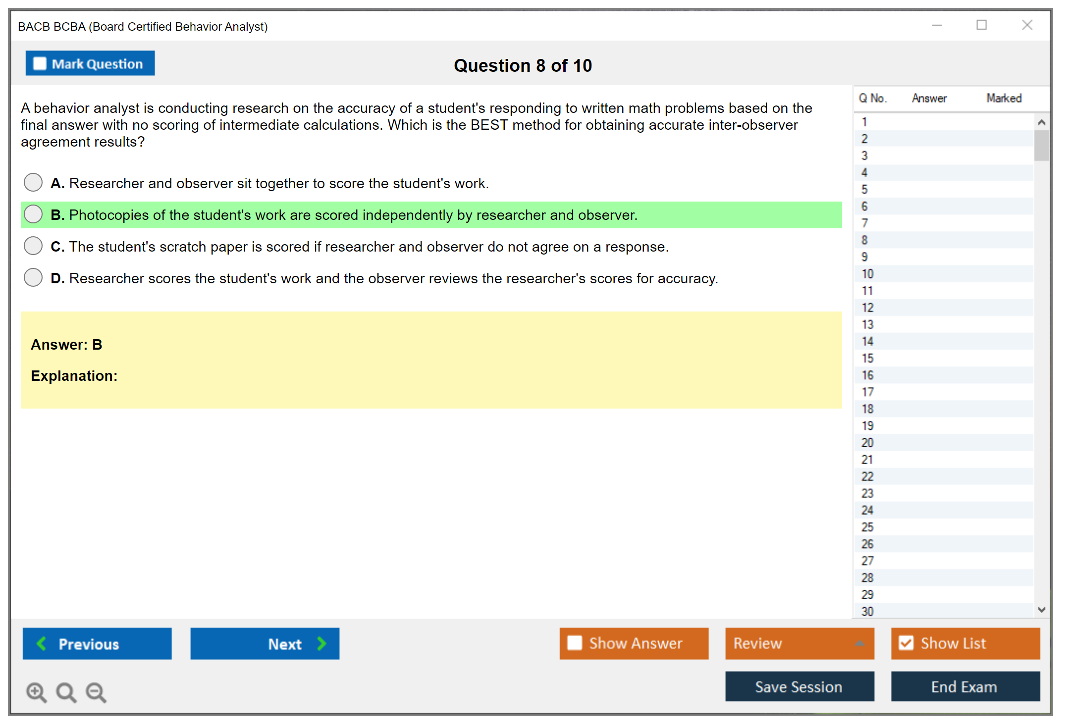 The BACB BCBA Exam consists of 150 multiple-choice questions.