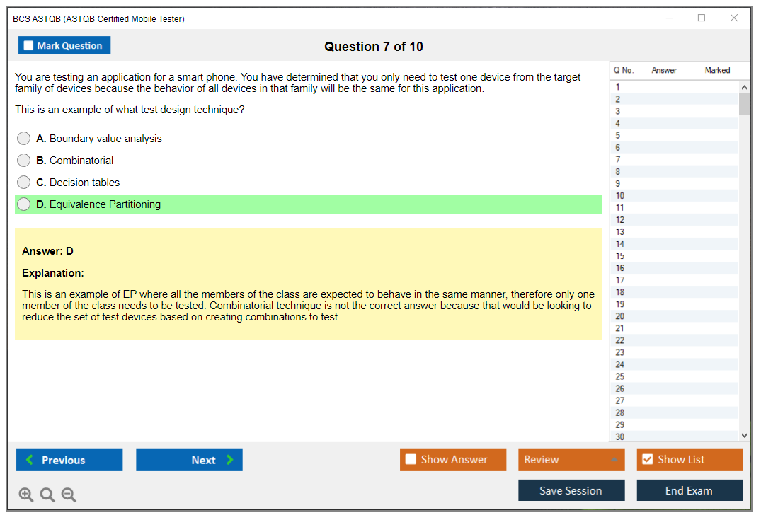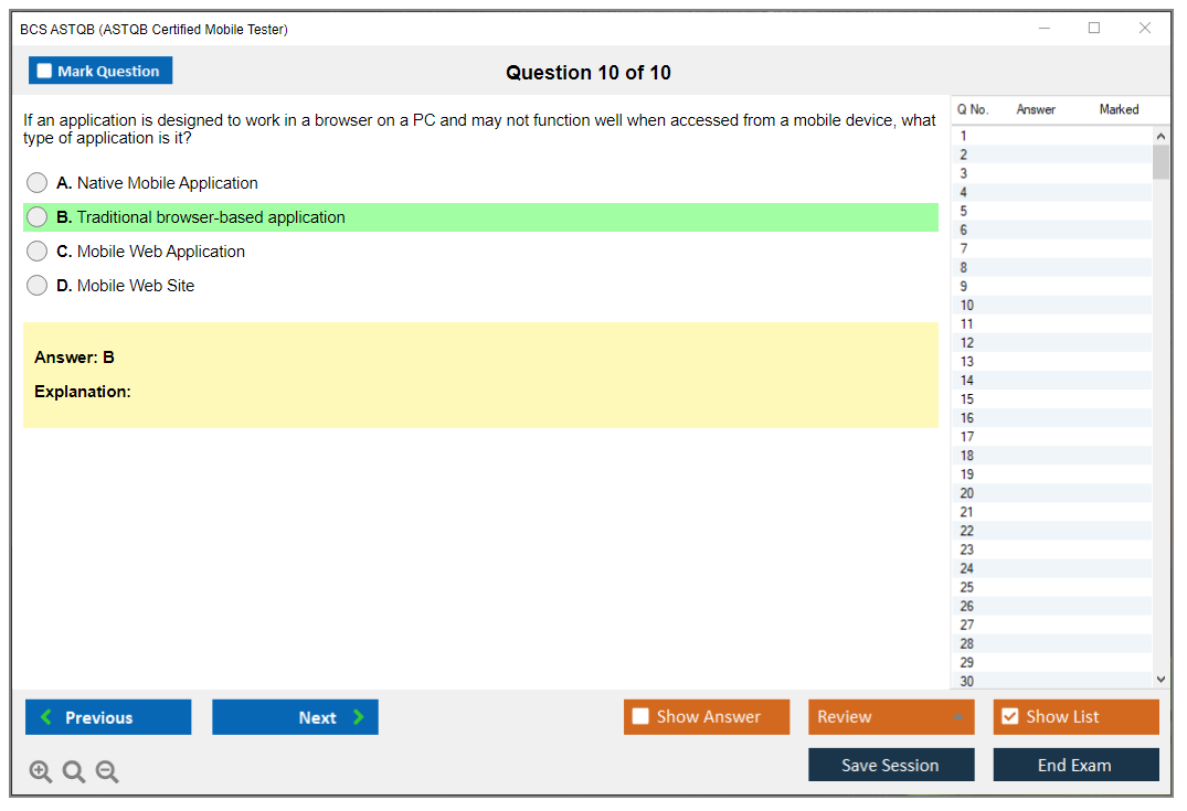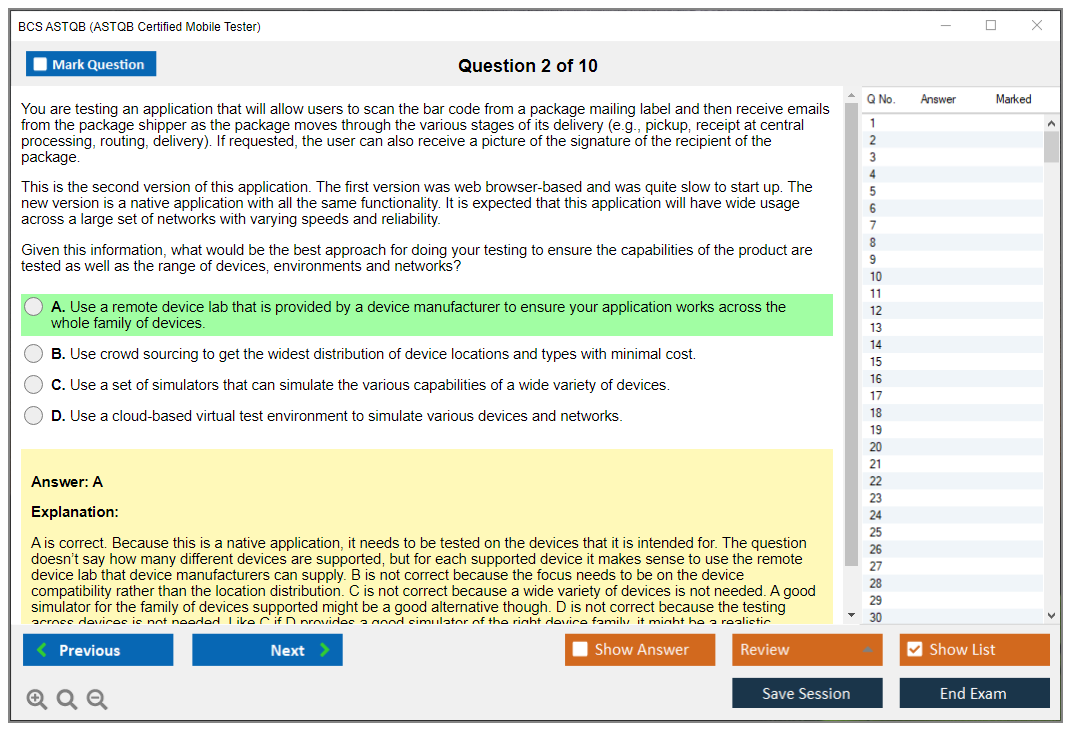 The BCS ASTQB Exam is a certification exam offered by the American Software Testing Qualifications Board (ASTQB) to certify individuals in various aspects of software testing, including mobile testing.