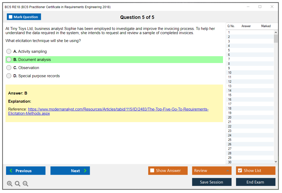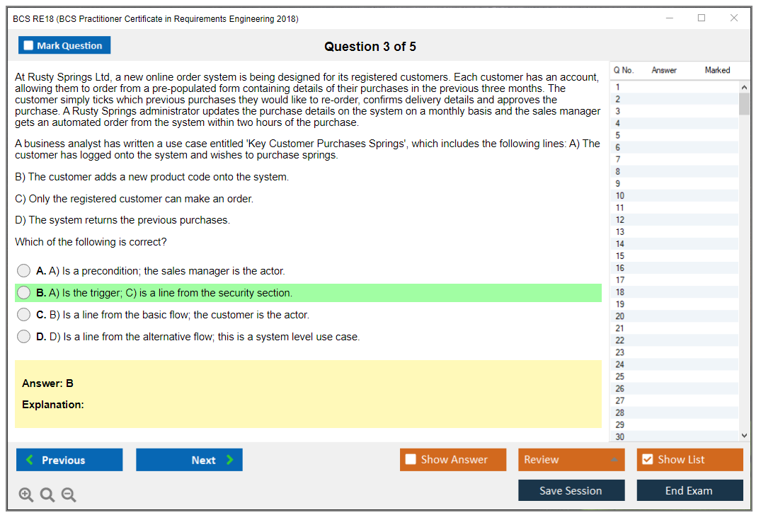 Sample questions for the BCS RE18 Exam can usually be found in the official BCS study guides and training materials provided by authorized training providers.