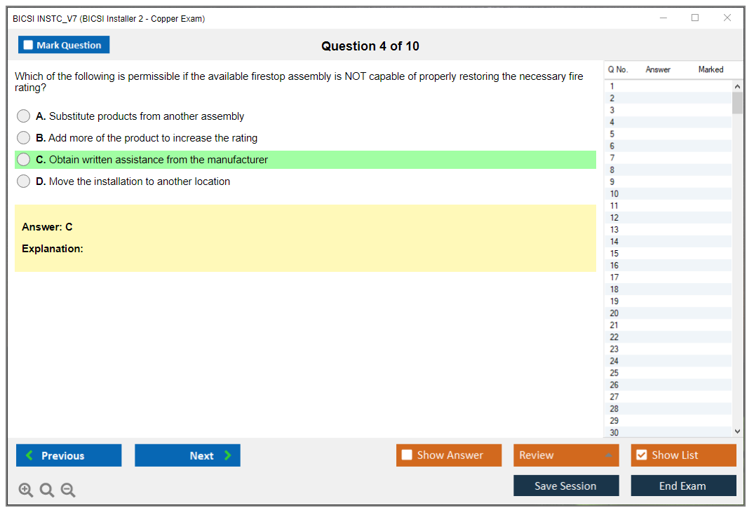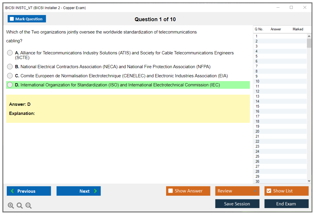 The BICSI INSTC_V7 Exam is designed to assess the proficiency of installers in the installation, termination, and testing of copper cabling systems. It is a part of the BICSI certification track for cabling installation professionals.