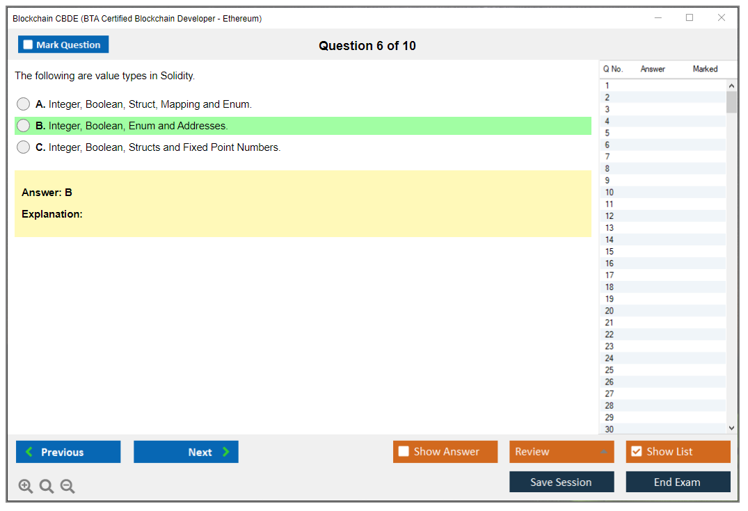 The Blockchain CBDE Exam consists of 70 multiple-choice questions.