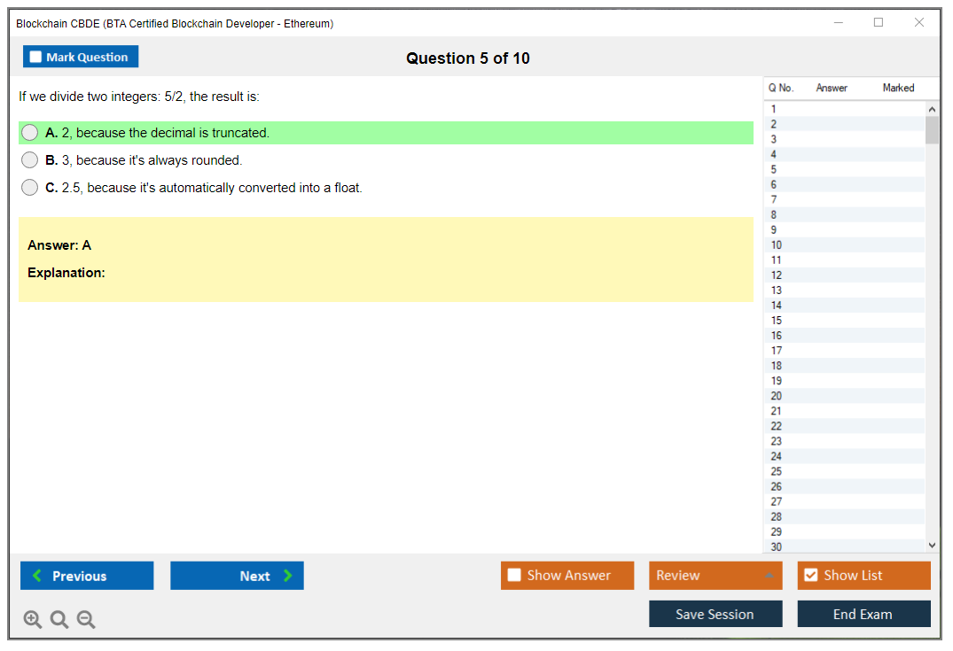 The question format of the Blockchain CBDE Exam is multiple-choice.