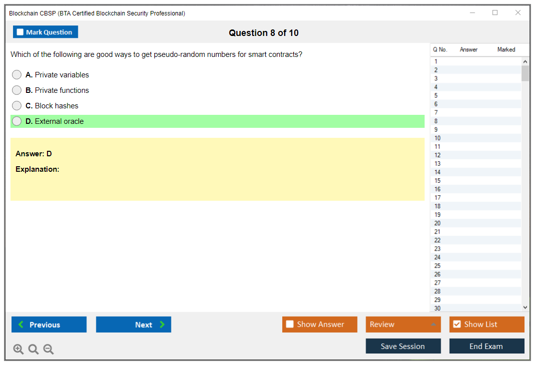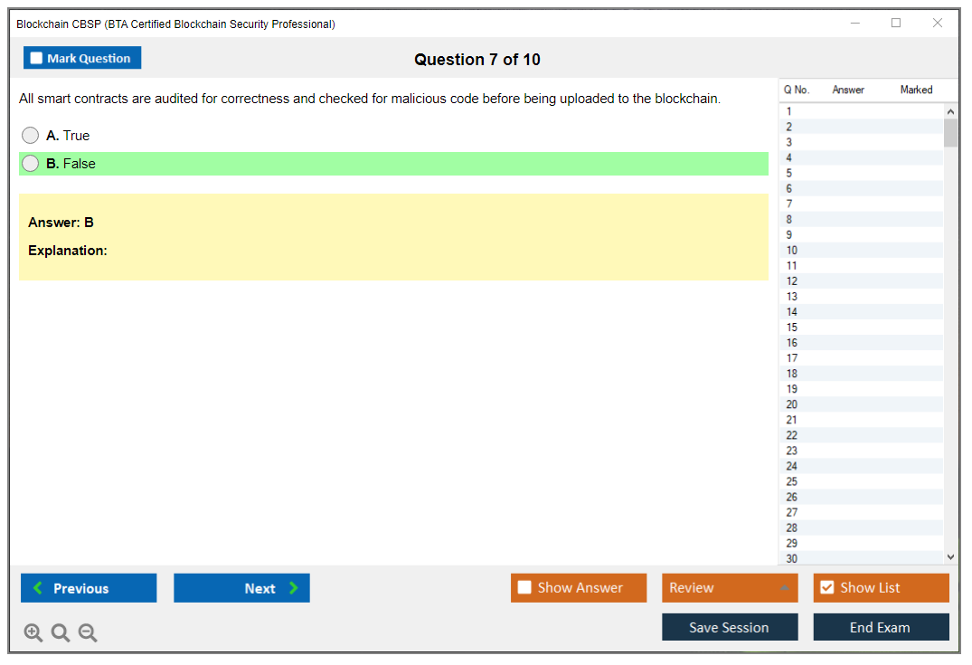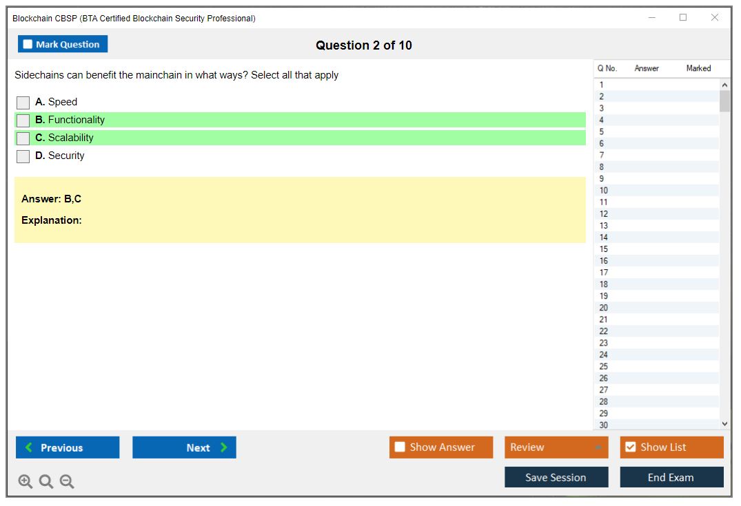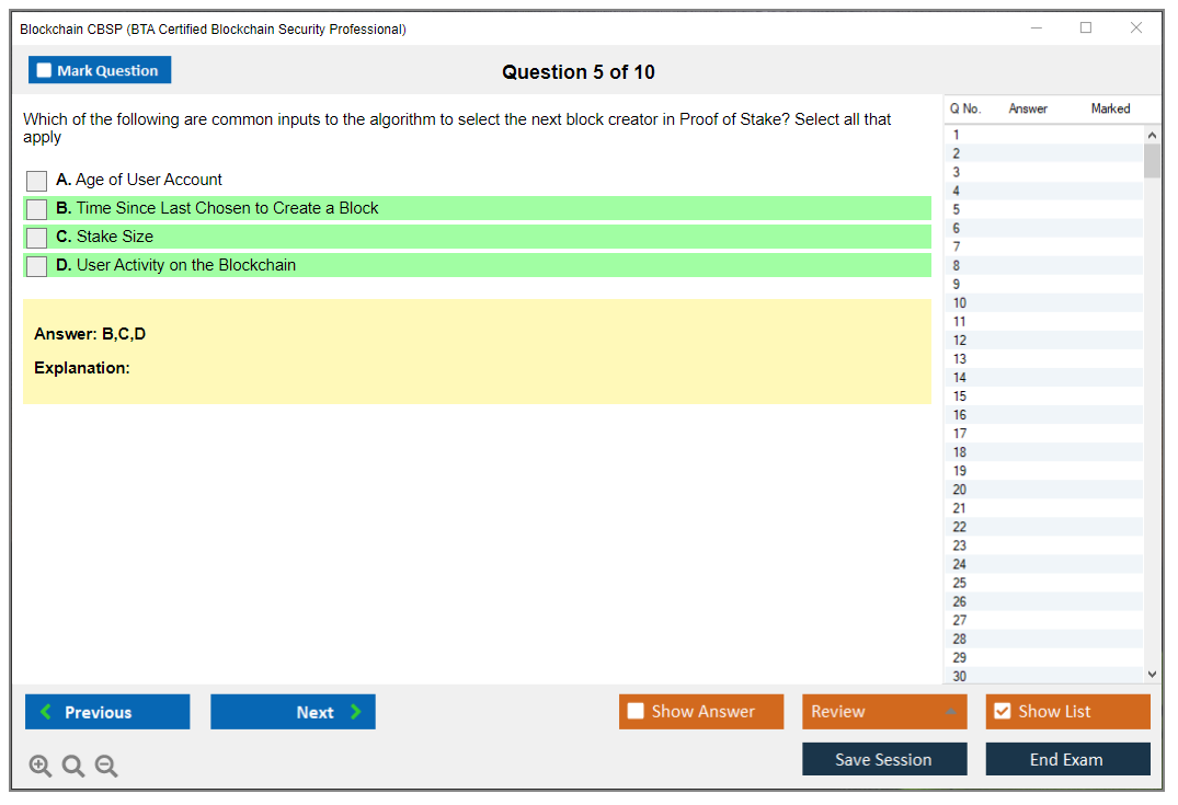 The question format of the Blockchain CBSP Exam is multiple-choice.