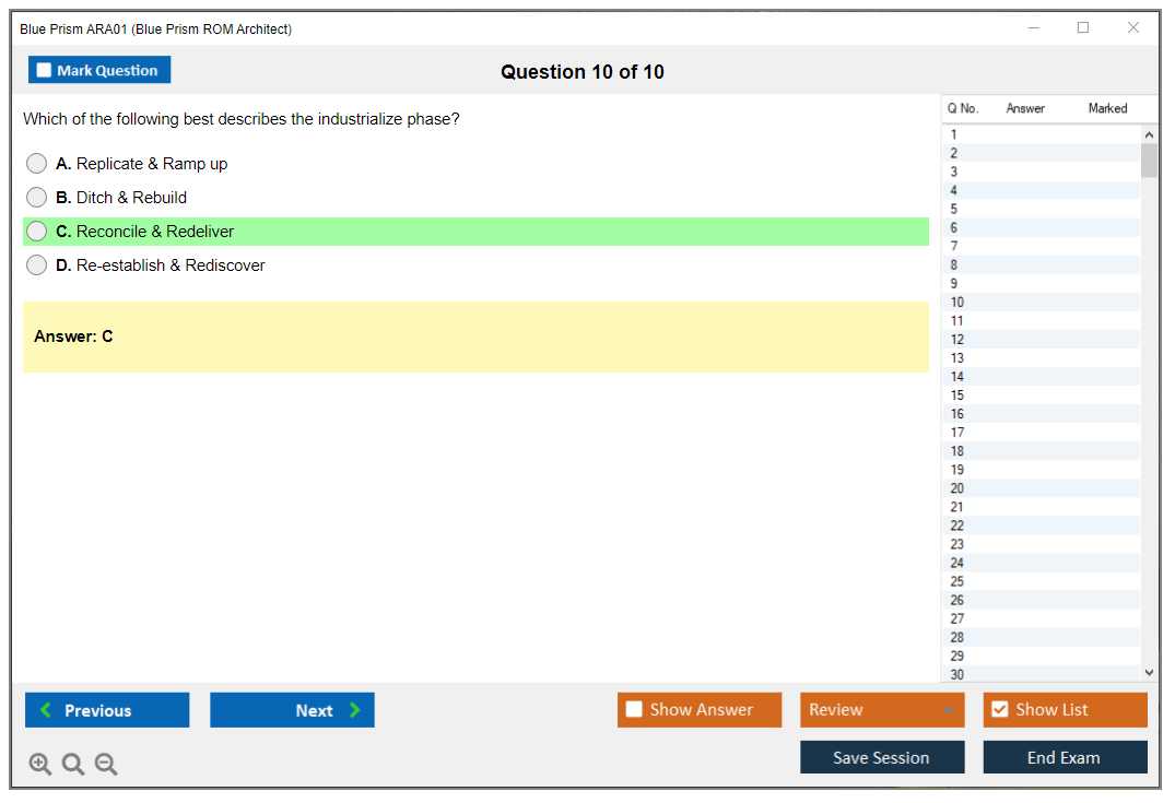 There are no formal prerequisites for the Blue Prism ARA01 Exam, but it is recommended that candidates have hands-on experience with Blue Prism and familiarity with ROM principles.