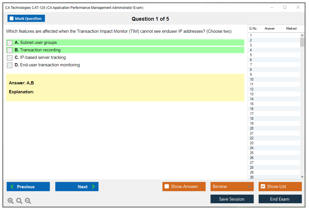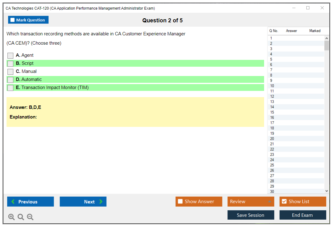 The exact number of questions asked in the CA Technologies CAT-120 Exam may vary, but typically it includes around 50-60 questions.