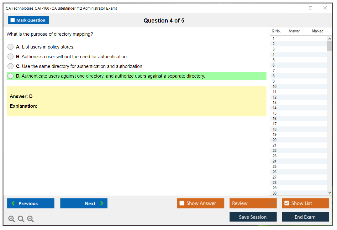 The CA Technologies CAT-160 Exam, also known as the CA SiteMinder r12 Administrator Exam, is a certification exam that tests the competency of professionals in managing and administering CA SiteMinder r12.
