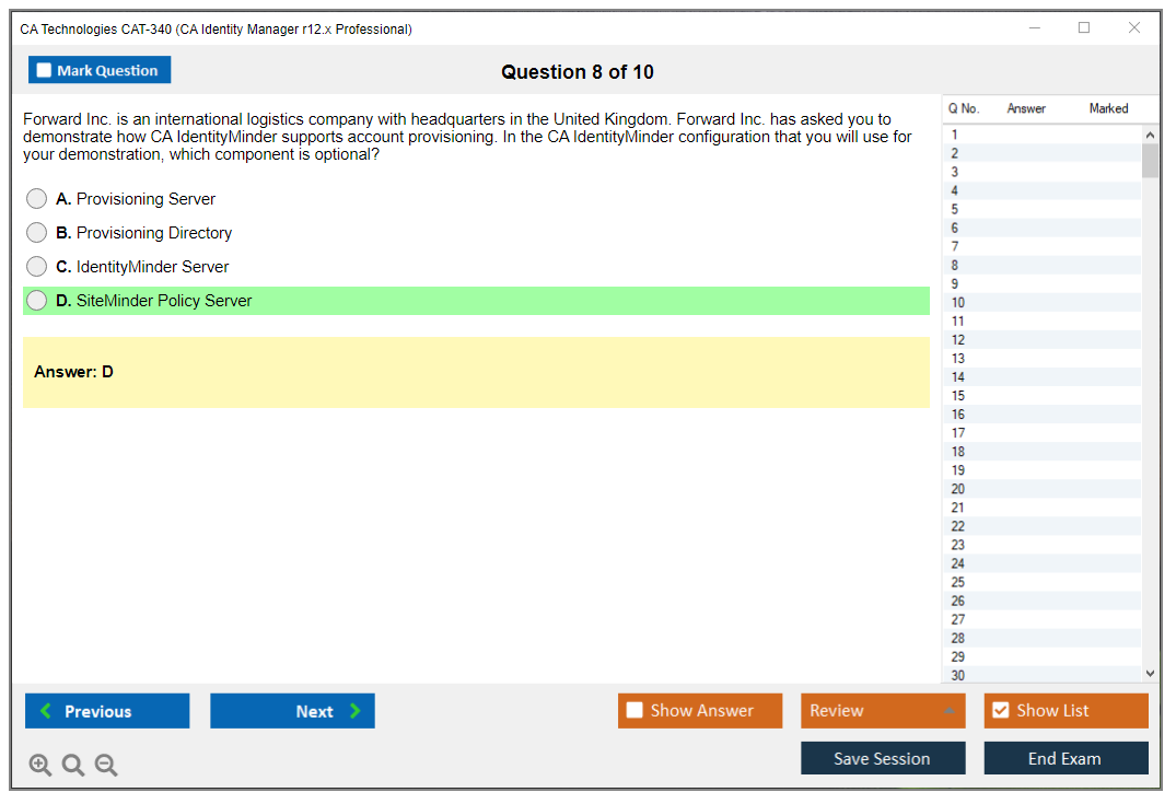 The CA Technologies CAT-340 (CA Identity Manager r12.x Professional) Exam is designed to validate the skills and knowledge required to implement, configure, and manage CA Identity Manager r12.x solutions. This certification is aimed at professionals who work with identity management solutions and want to demonstrate their expertise in using CA Identity Manager.