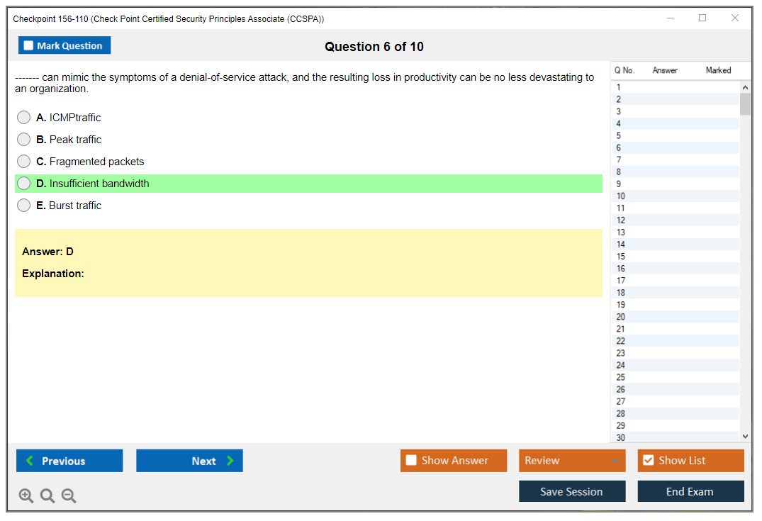 The Check Point Certified Security Principles Associate (CCSPA) Exam, also known as Checkpoint 156-110, is designed to validate foundational knowledge and skills in network security principles and Check Point technologies.