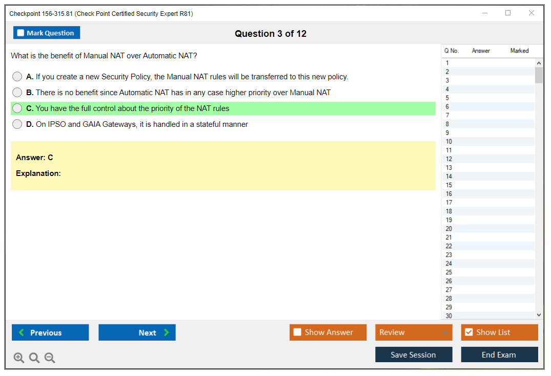 The Checkpoint 156-315.81 (Check Point Certified Security Expert R81) Exam is a certification exam designed for IT professionals who are responsible for managing and supporting Check Point Security solutions. It validates the candidate's expertise in advanced security management, including installation, configuration, and troubleshooting of Check Point's security solutions.