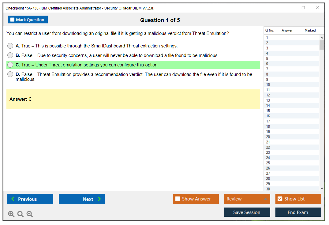 Note: Checkpoint 156-730 (IBM Certified Associate Administrator - Security QRadar SIEM V7.2.8) will not receive any new updates.